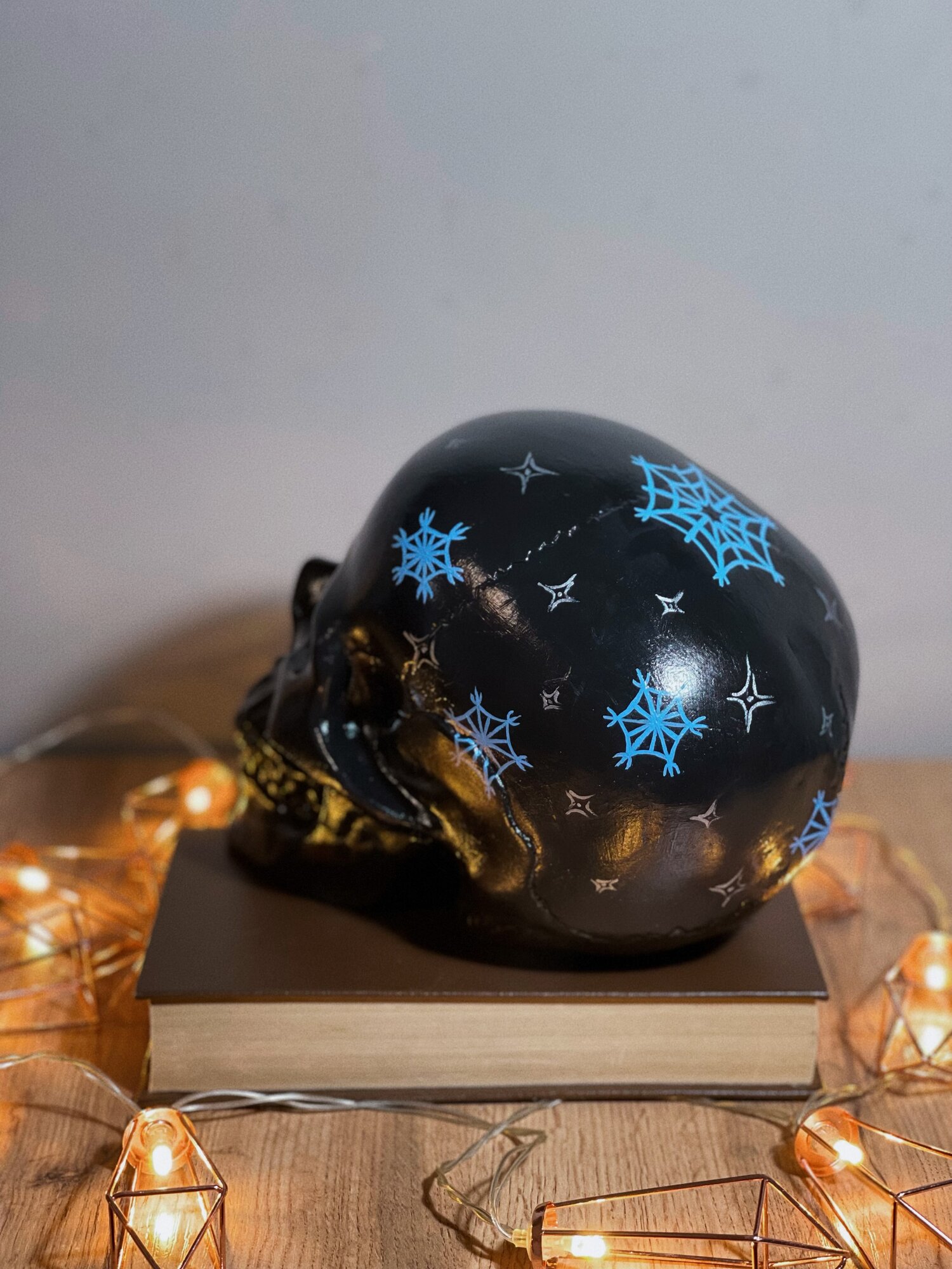 Статуэтка Череп анатомический из гипса в черном цвете с золотым дизайном, 15х15х20 см