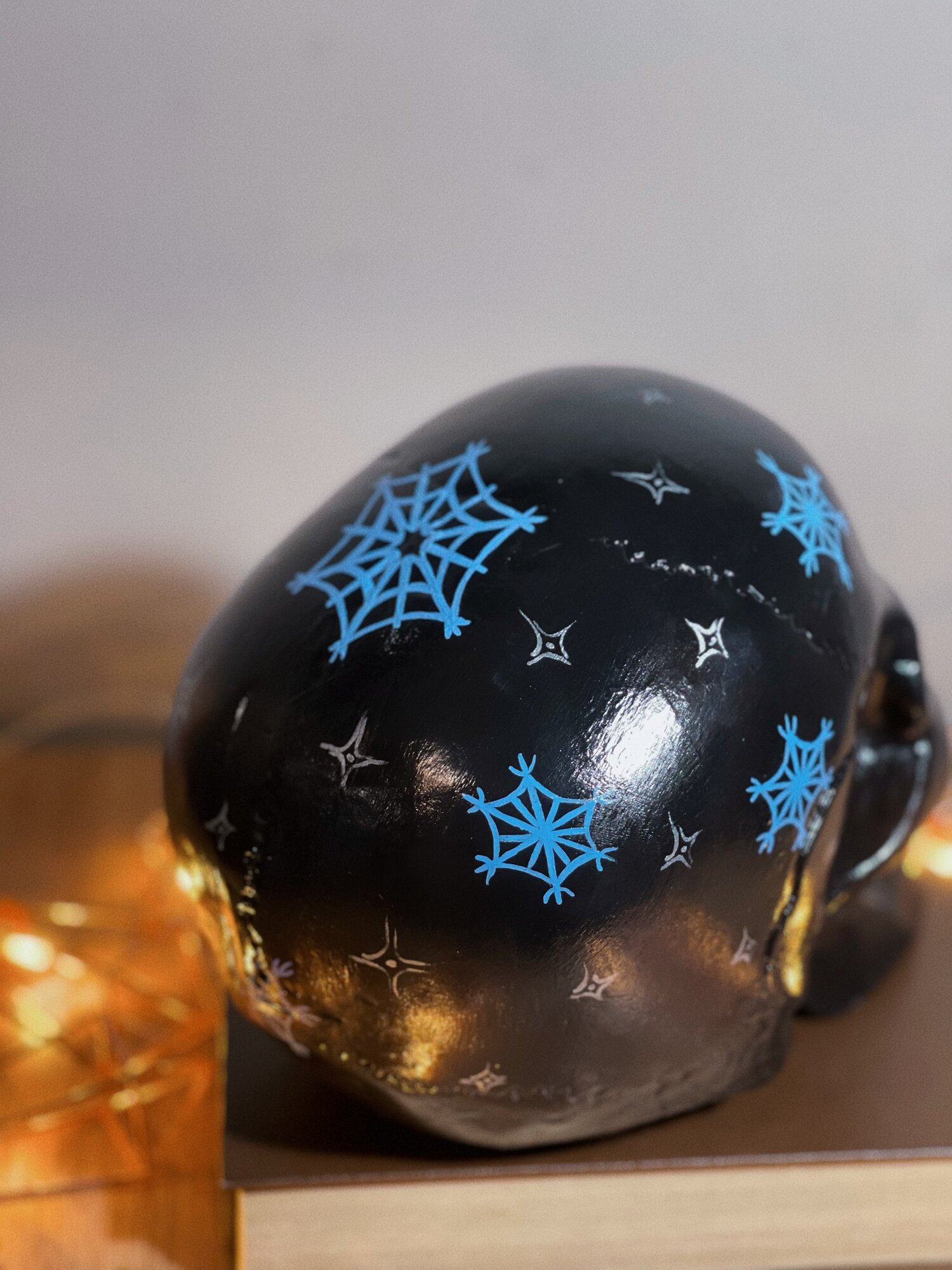 Купить Статуэтка Череп анатомический из гипса, 15х15х20 см, с рисунком в виде снежинок