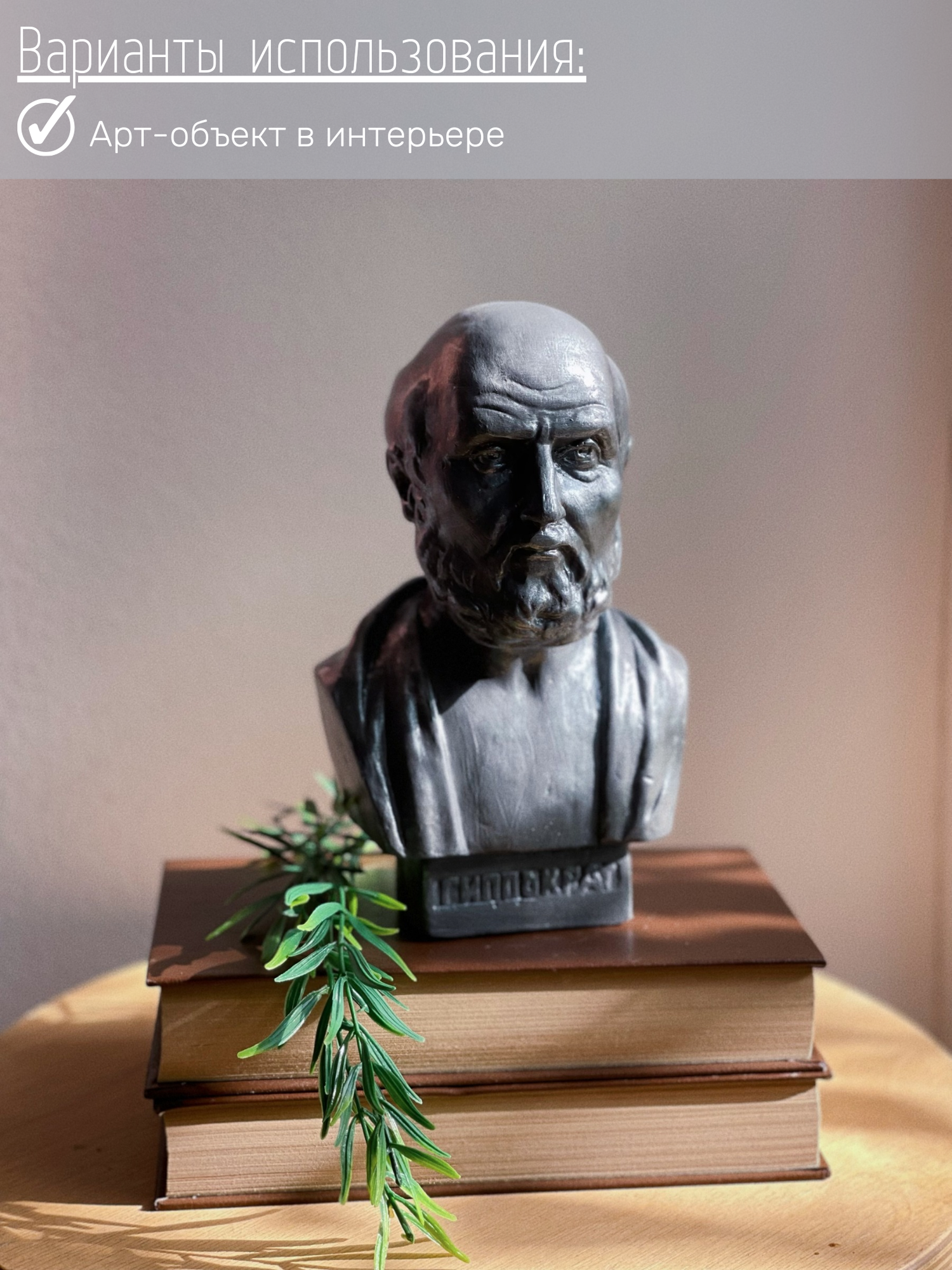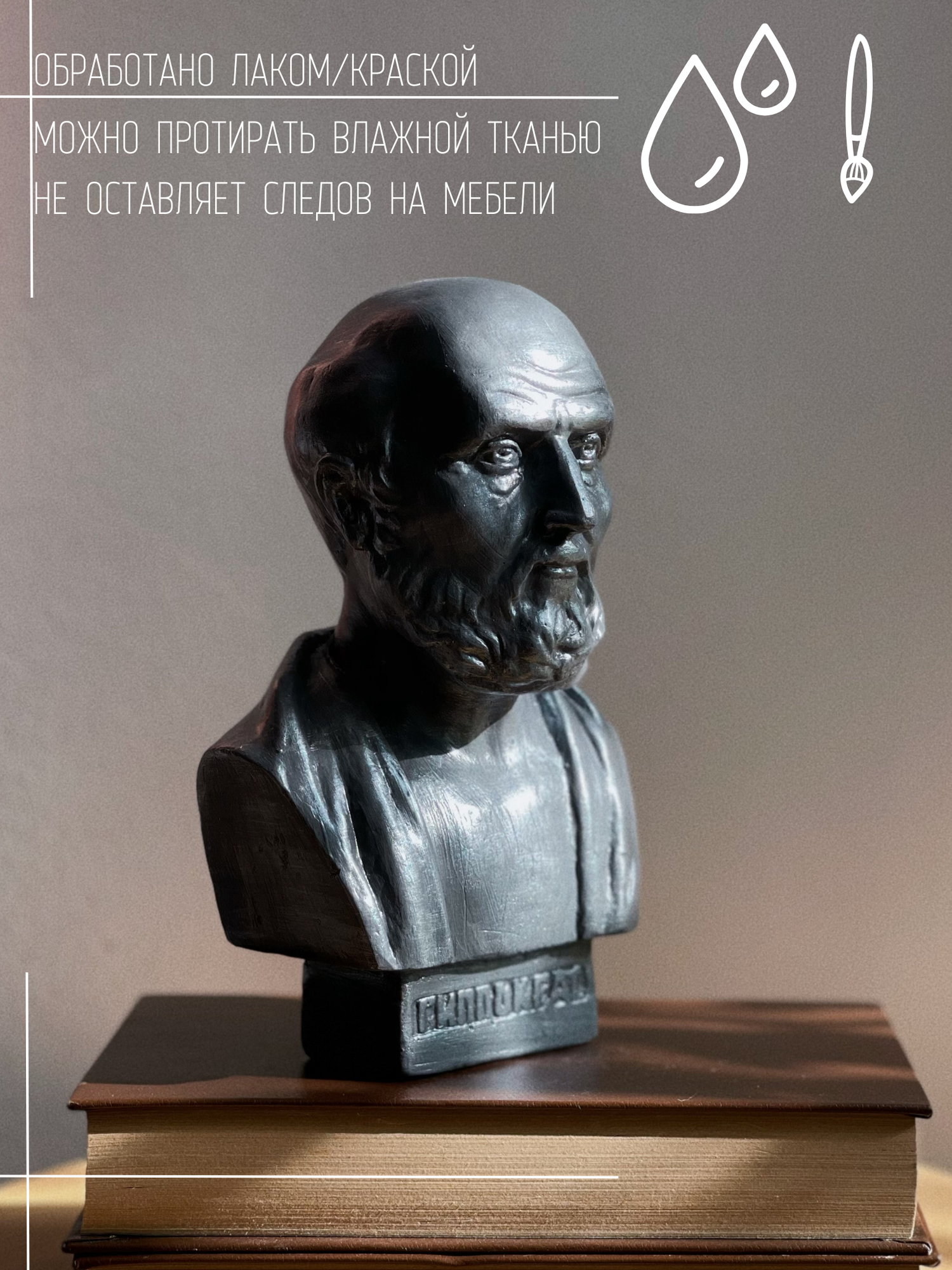 СохранитьСтатуэтка Бюст Гиппократа из гипса в серебристом цвете, 19 см, врач интересное: