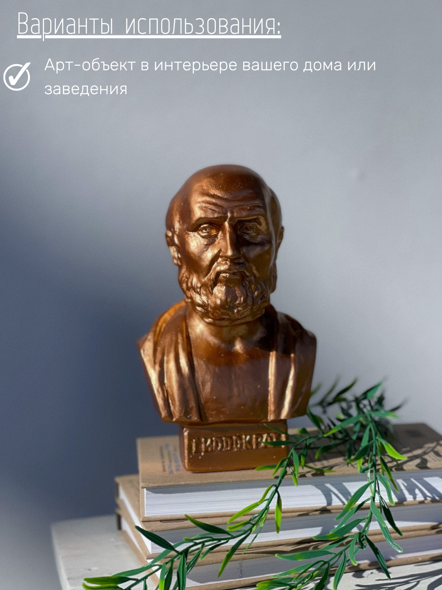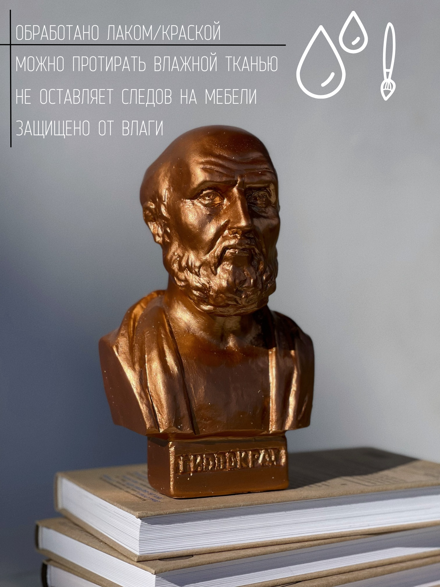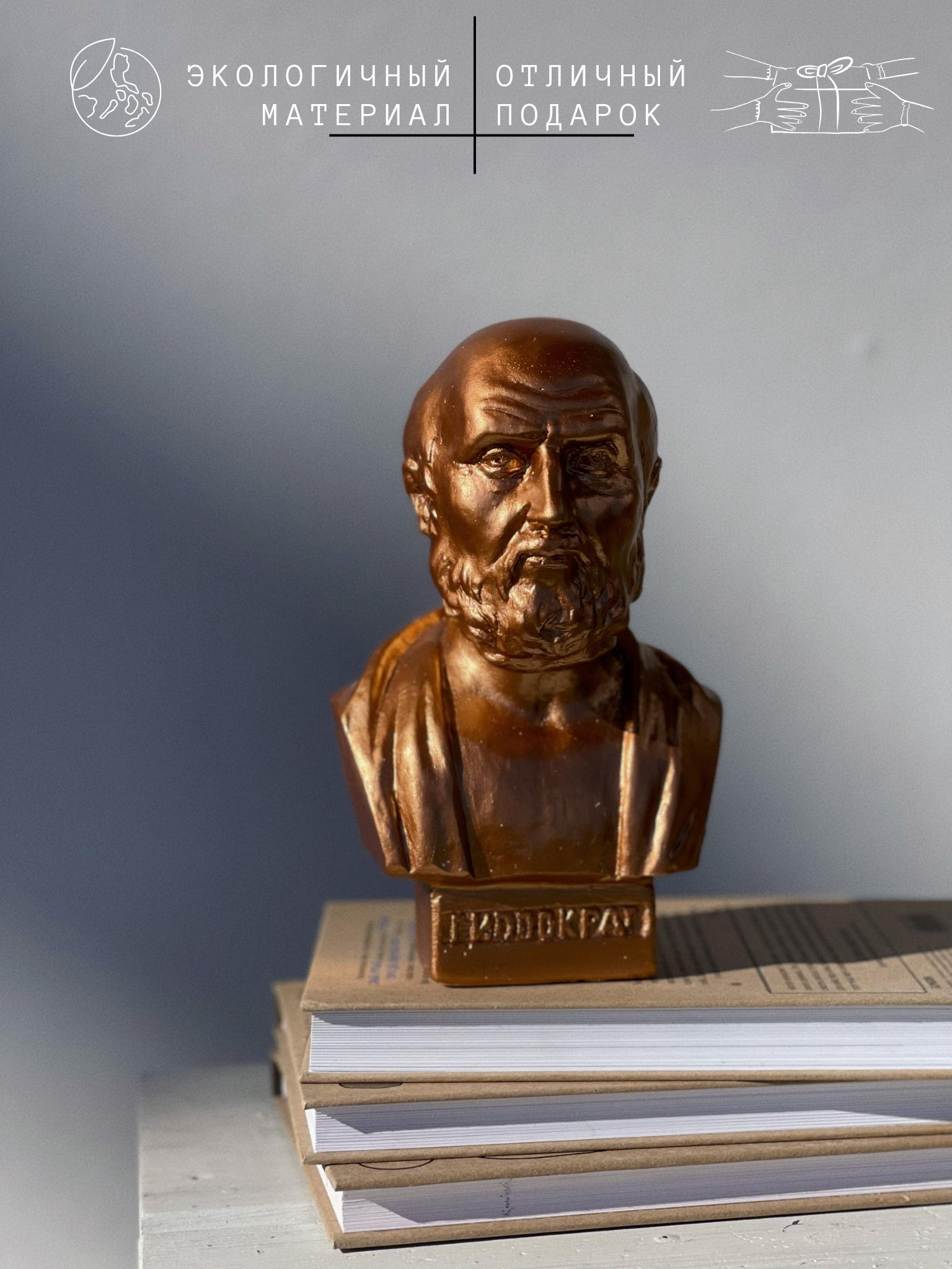 СохранитьСтатуэтка Бюст Гиппократа из гипса в бронзовом цвете, 19 см, врач интересное: