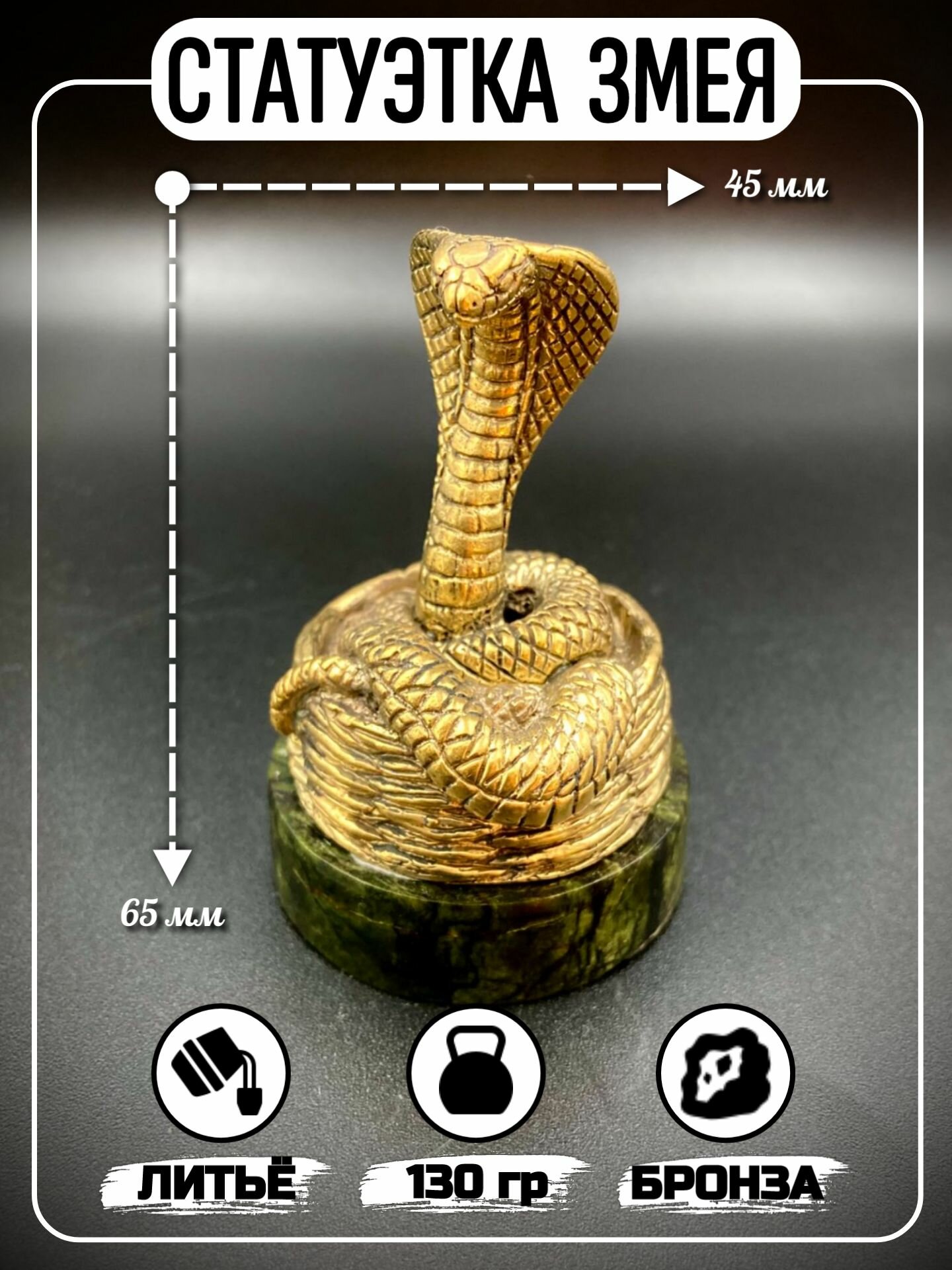 Купить Статуэтка змеи на камне змеевик символ года и мудрости фигурка из бронзы