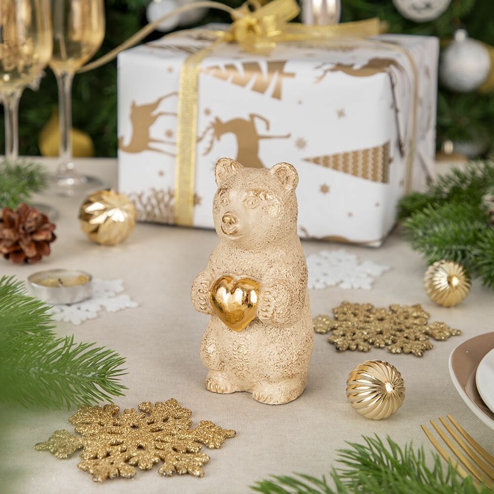 Купить Статуэтка Bogacho Мишка Найс из литьевого мрамора для украшения интерьера гостиной, спальни, кухни