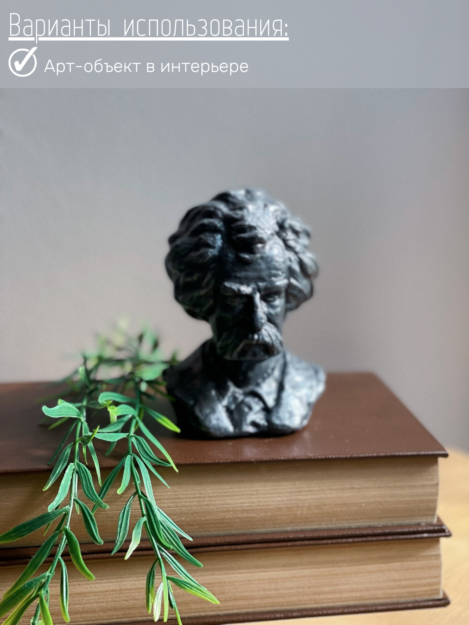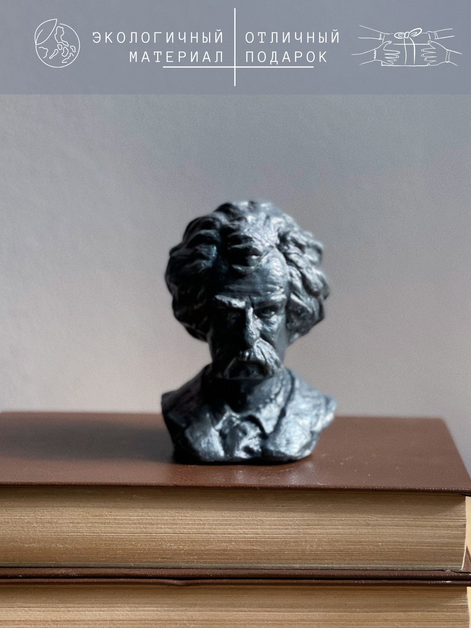 СохранитьСтатуэтка бюст Марка Твена, высота 10 см, гипс, серо-серебристый интересное: