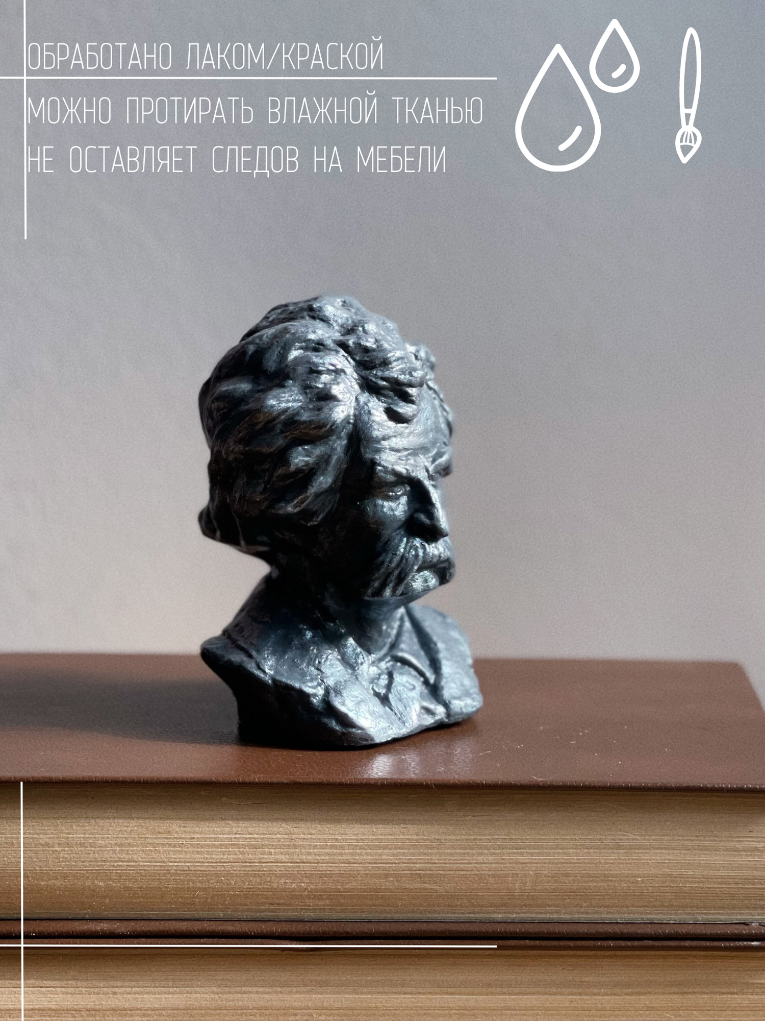 Купить Статуэтка бюст Марка Твена, высота 10 см, гипс, серо-серебристый