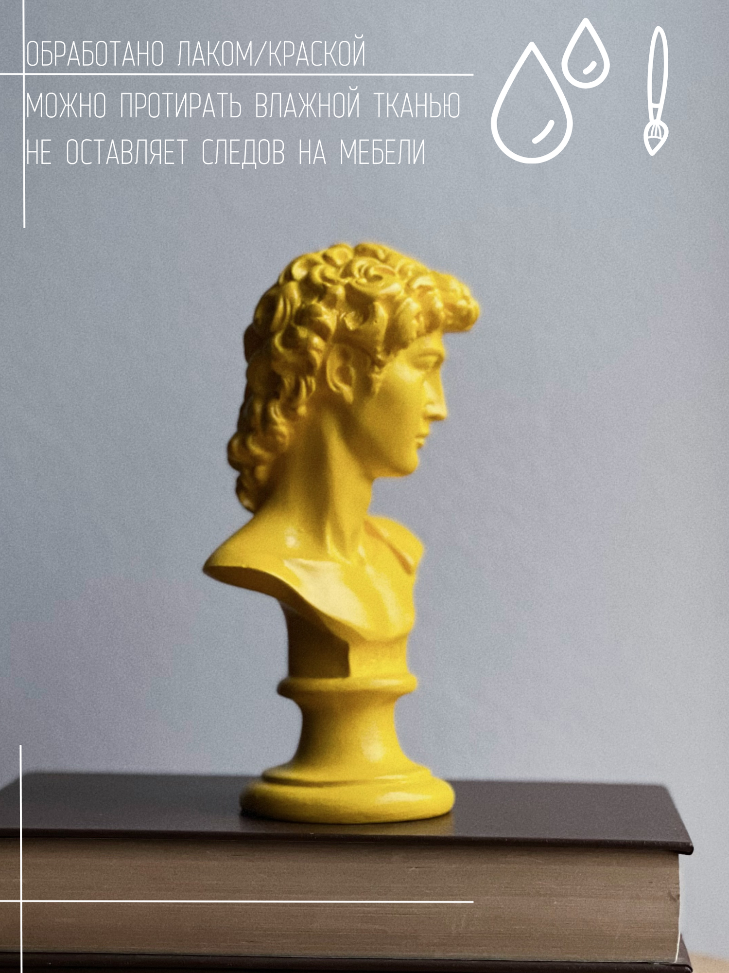 СохранитьСтатуэтка Бюст Давида, 17 см, Давид Микеланджело, гипс, желтый цвет интересное: