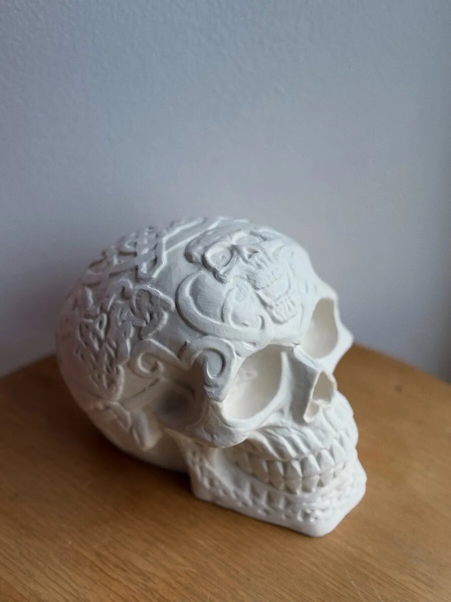 Купить Статуэтка из гипса Череп с узорами, 13х15х10 см, без окрашивания