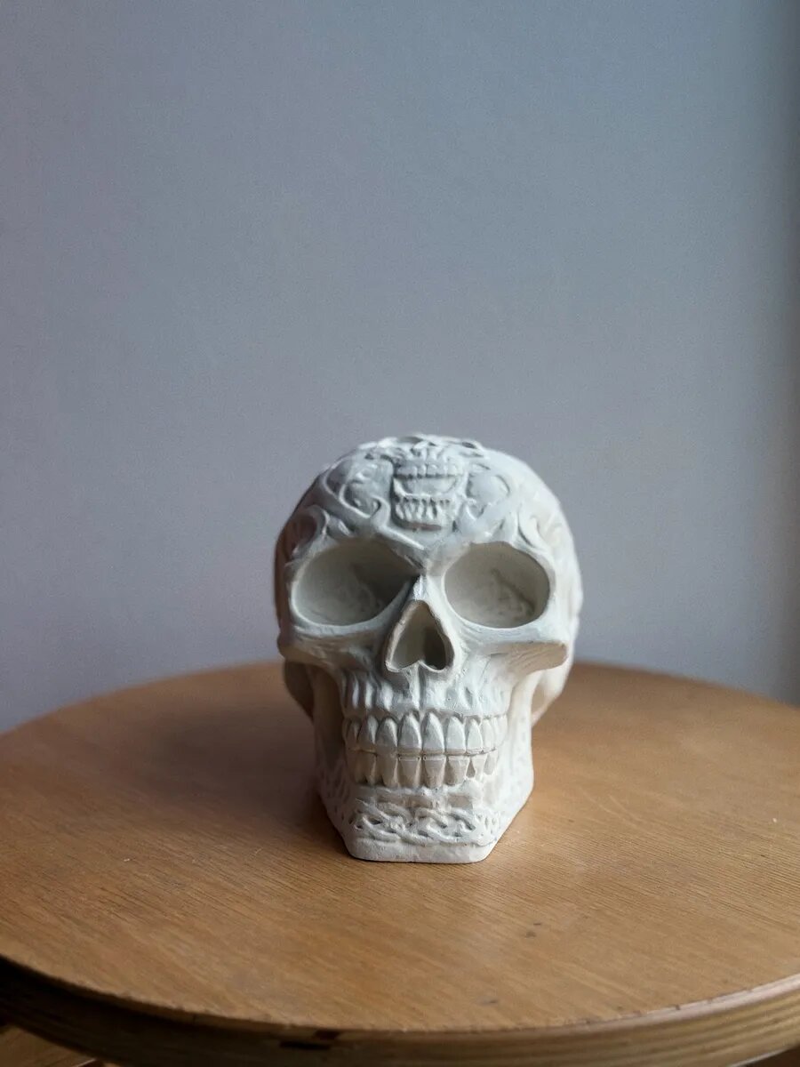 Статуэтка из гипса Череп с узорами, 13х15х10 см, без окрашивания интересное: