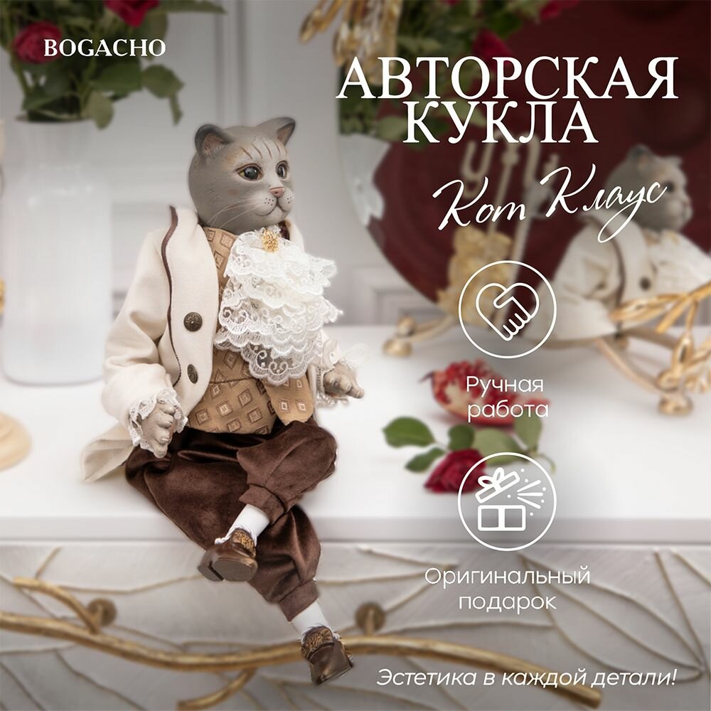 Купить Коллекционная кукла статуэтка Bogacho Кот Клаус для украшения интерьера спальни, гостиной и кухни