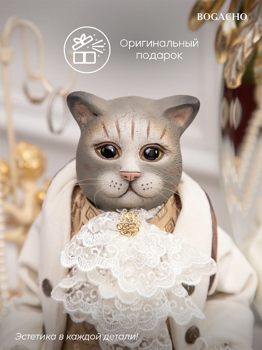 Коллекционная кукла статуэтка Bogacho Кот Пьер для украшения интерьера спальни, гостиной и кухни