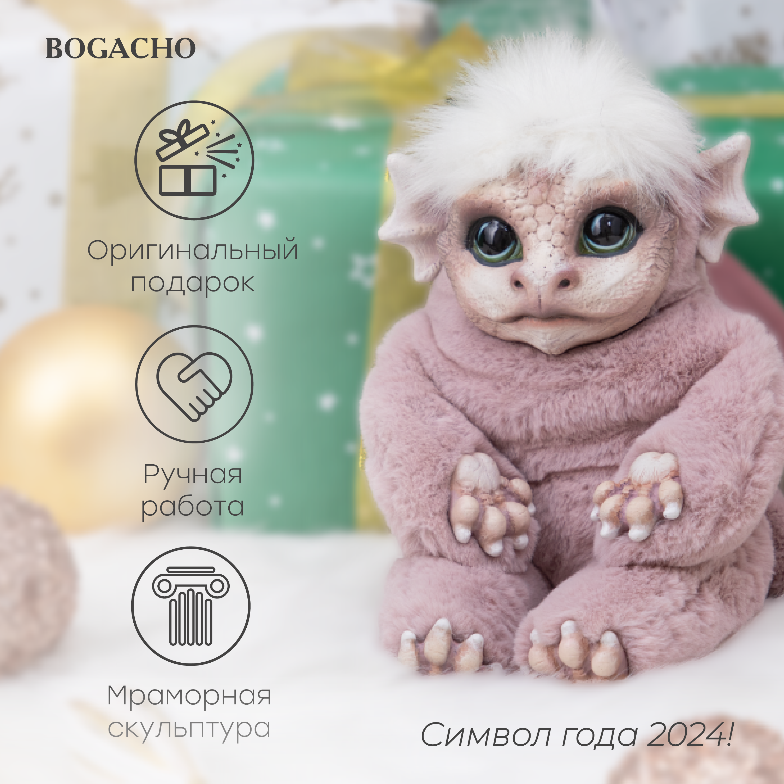 СохранитьСтатуэтка интерьерная мягкая игрушка кукла Bogacho Дракон "Бэби Мистик" пудровый интересное: