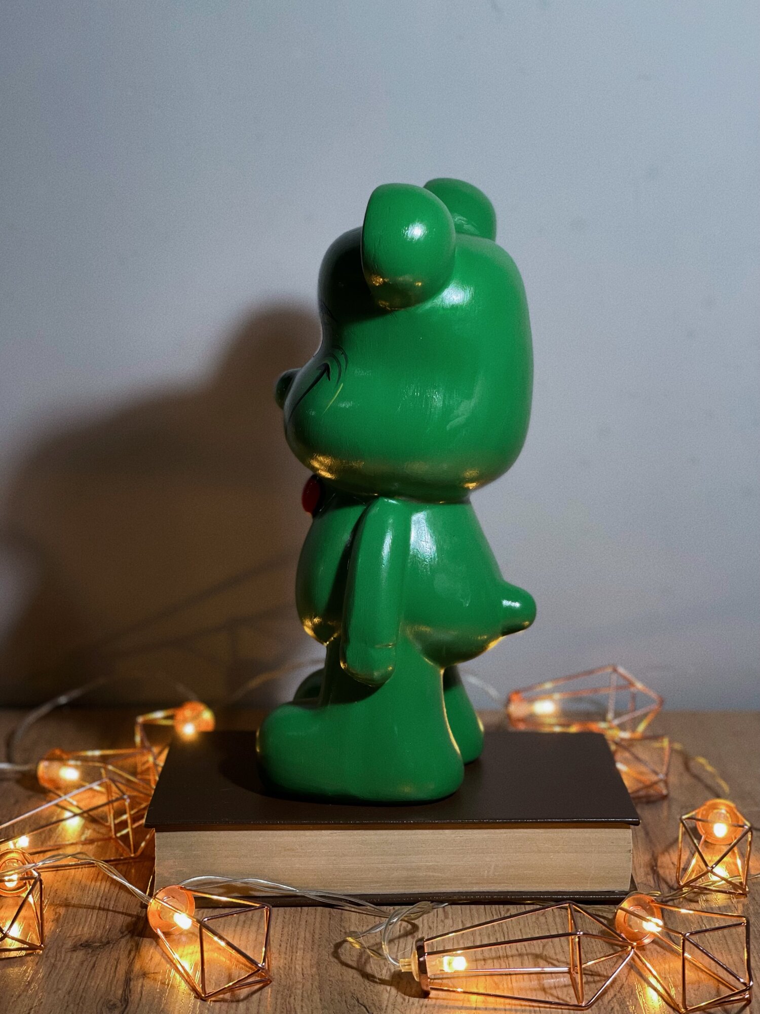 Статуэтка Мишка Интерьерный, 26 см, медведь из гипса, розовый с зеленым, пазлы, декор