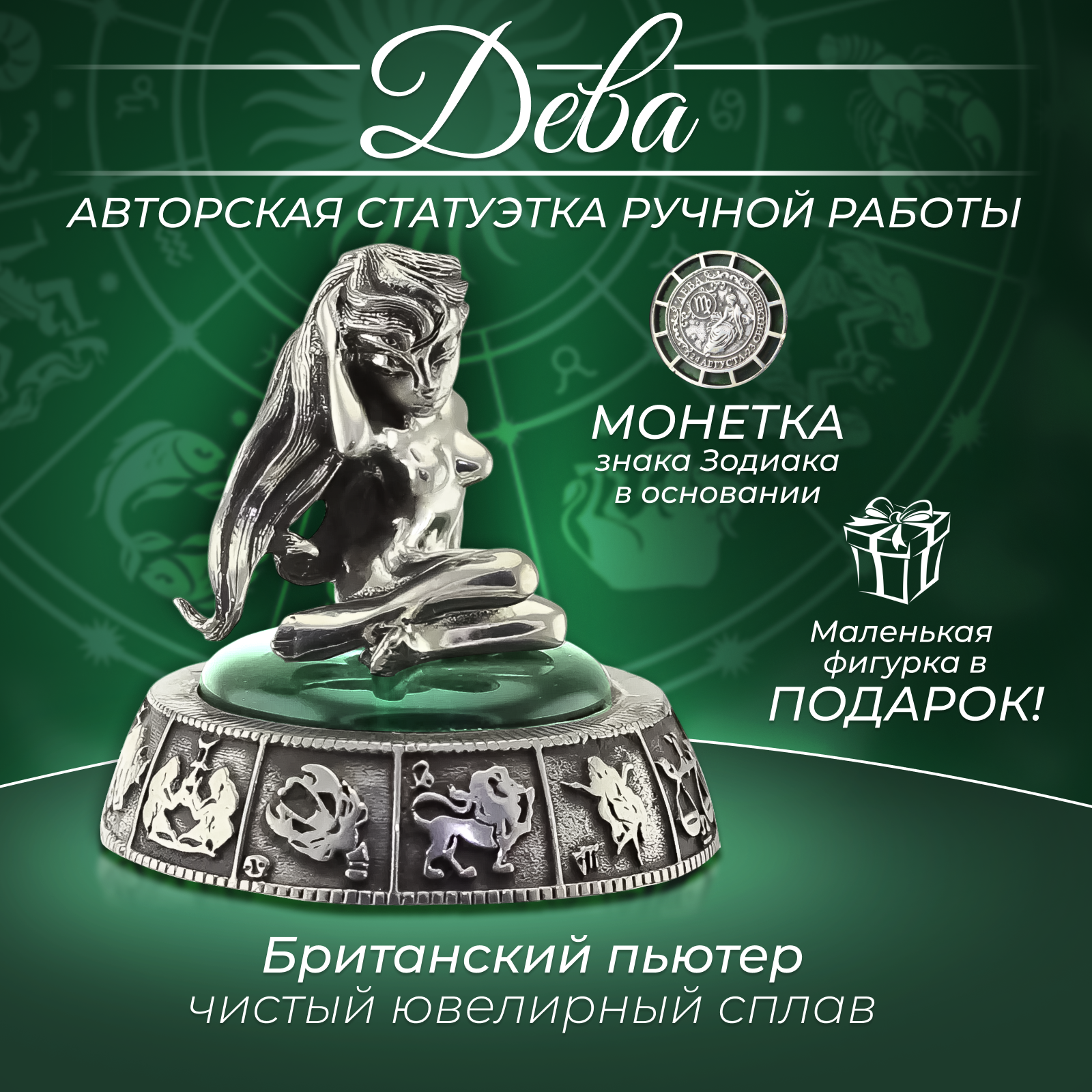 СохранитьСтатуэтка Дева знак Зодиака, фигурка из ювелирного сплава пьютер интересное:
