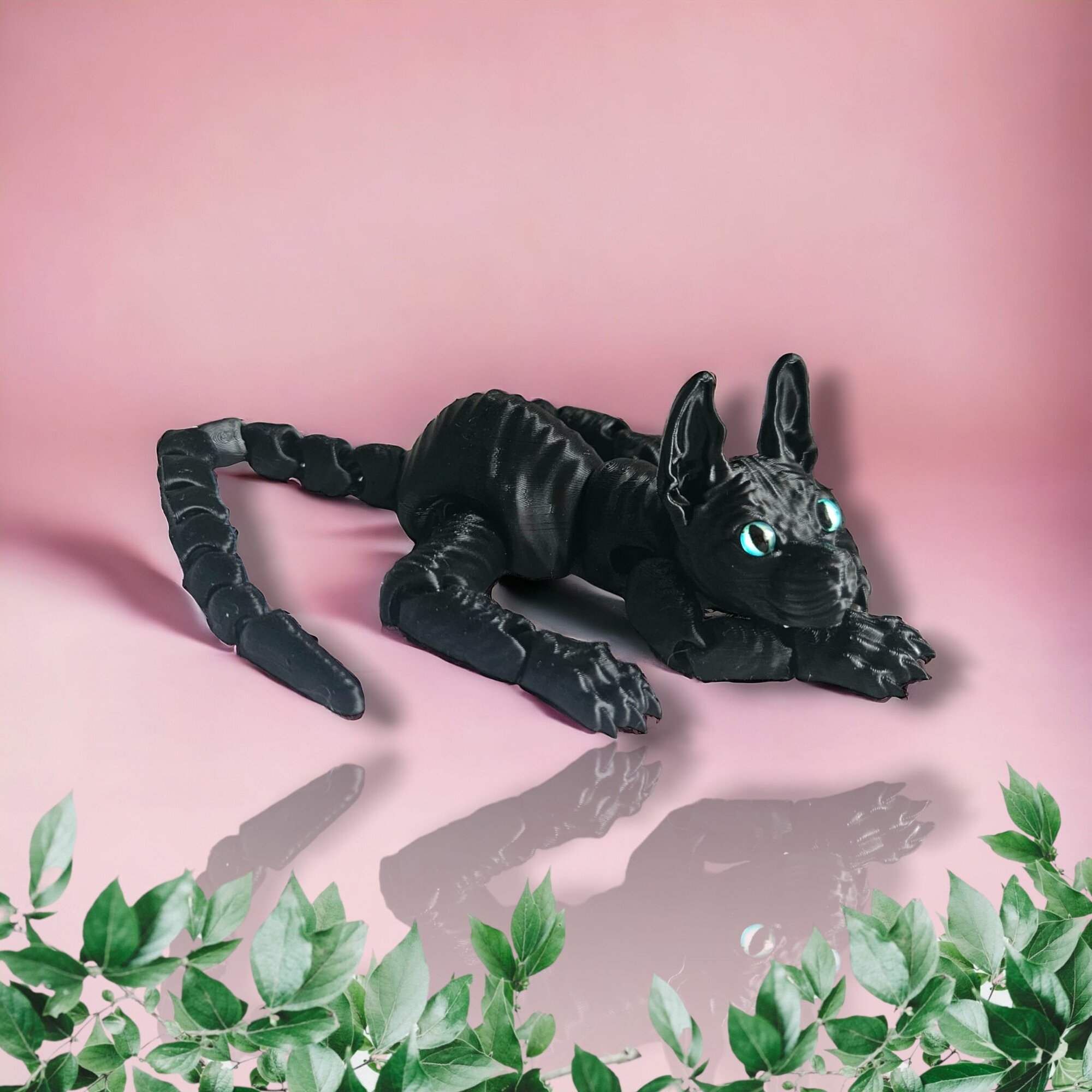 3д фигурка подвижный кот сфинкс черный, узкий зрачок, глаза голубые и зеленые