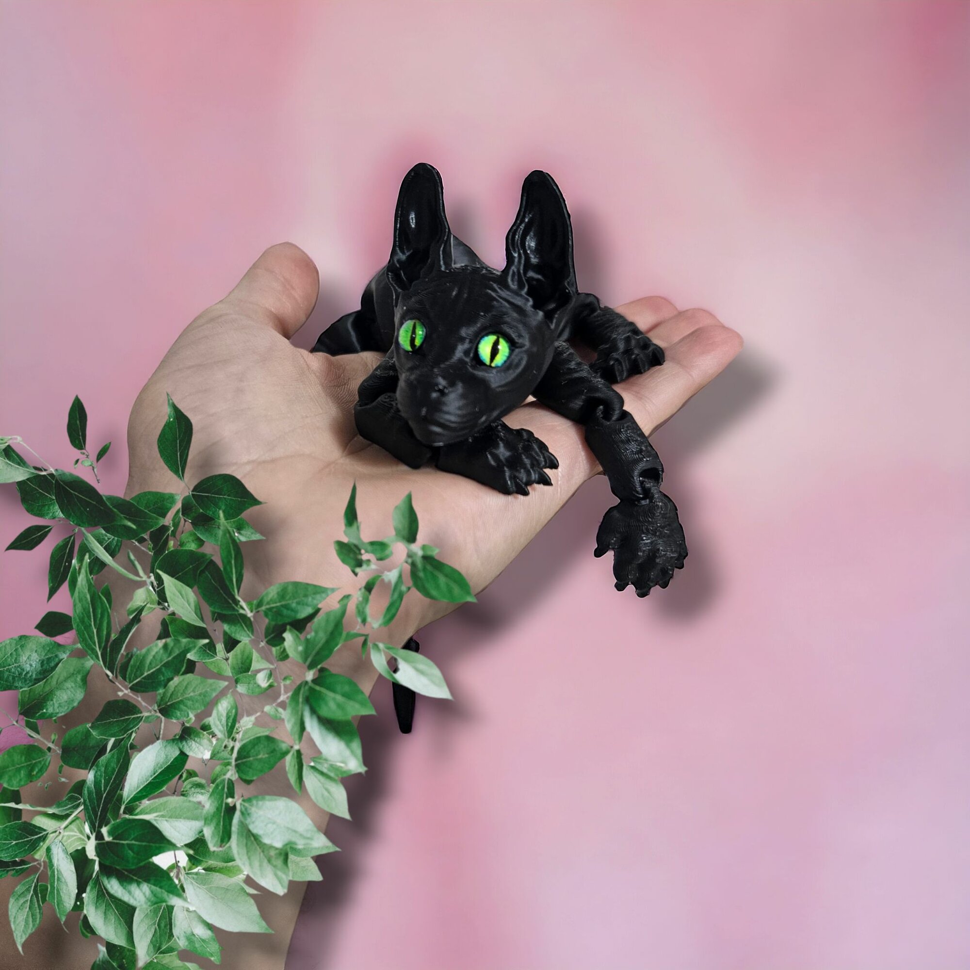 Сохранить3д фигурка подвижный котенок сфинкс антистресс черный, узкий зрачок, зеленые глаза интересное: