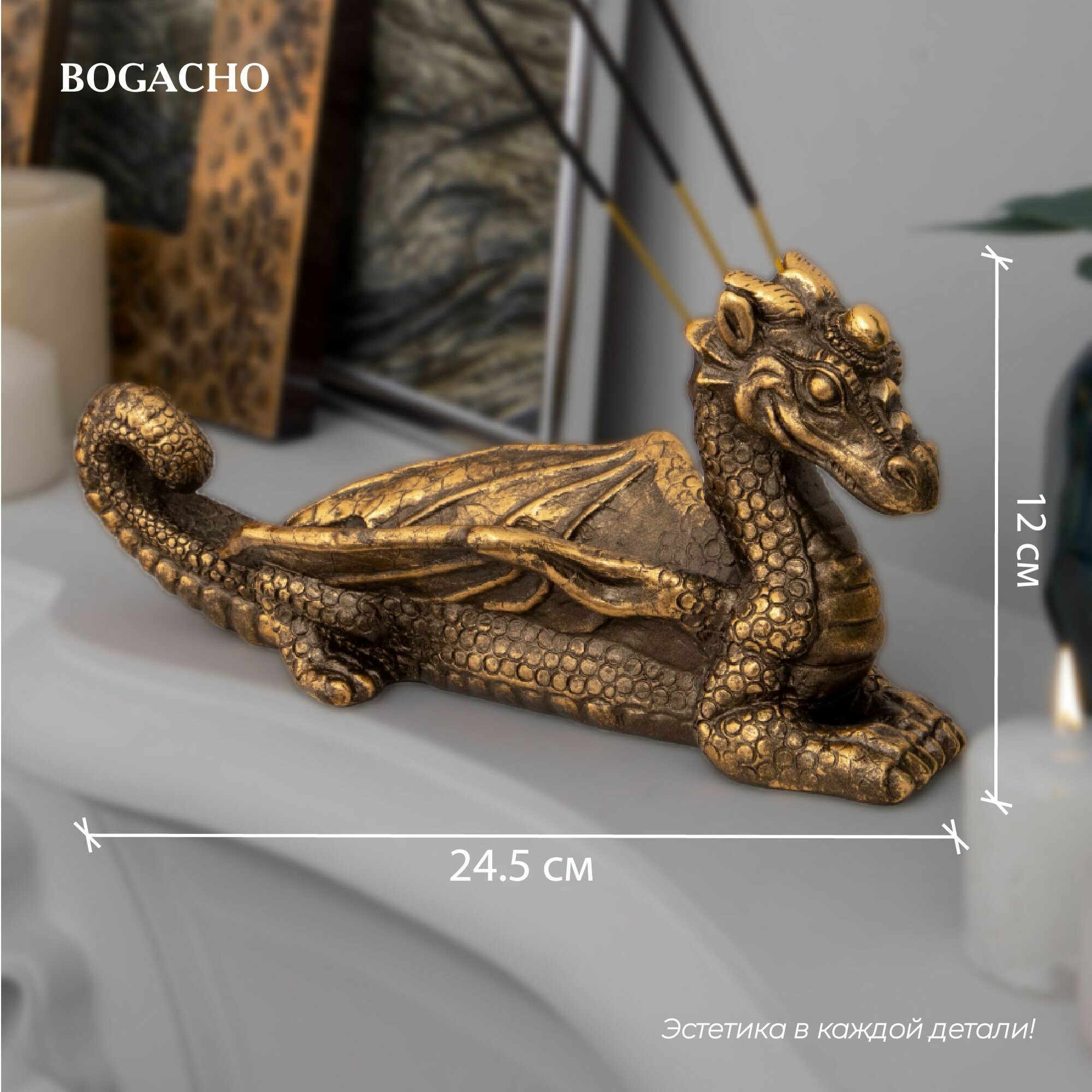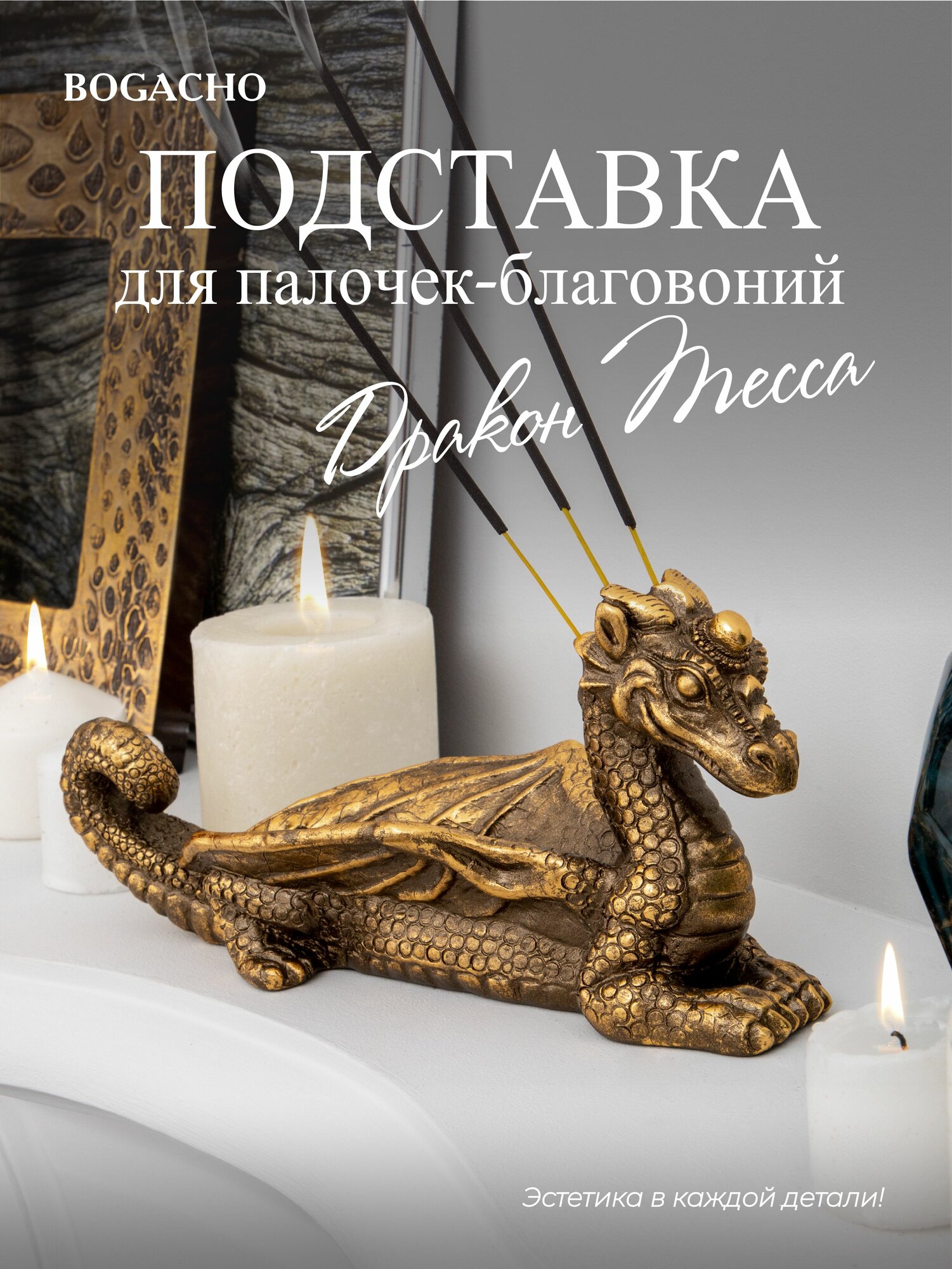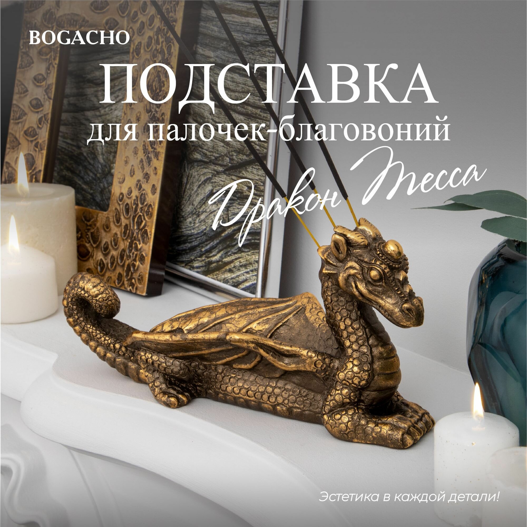 Мраморная подставка Bogacho Дракон Тесса под ароматические палочки благовония для медитаций, ароматерапии и SPA интересное:
