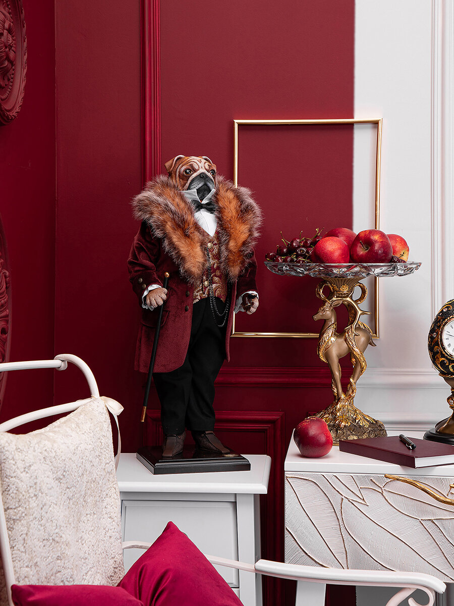 Коллекционная кукла статуэтка Bogacho Бульдог Граф Потемкин для украшения интерьера спальни, гостиной и кухни