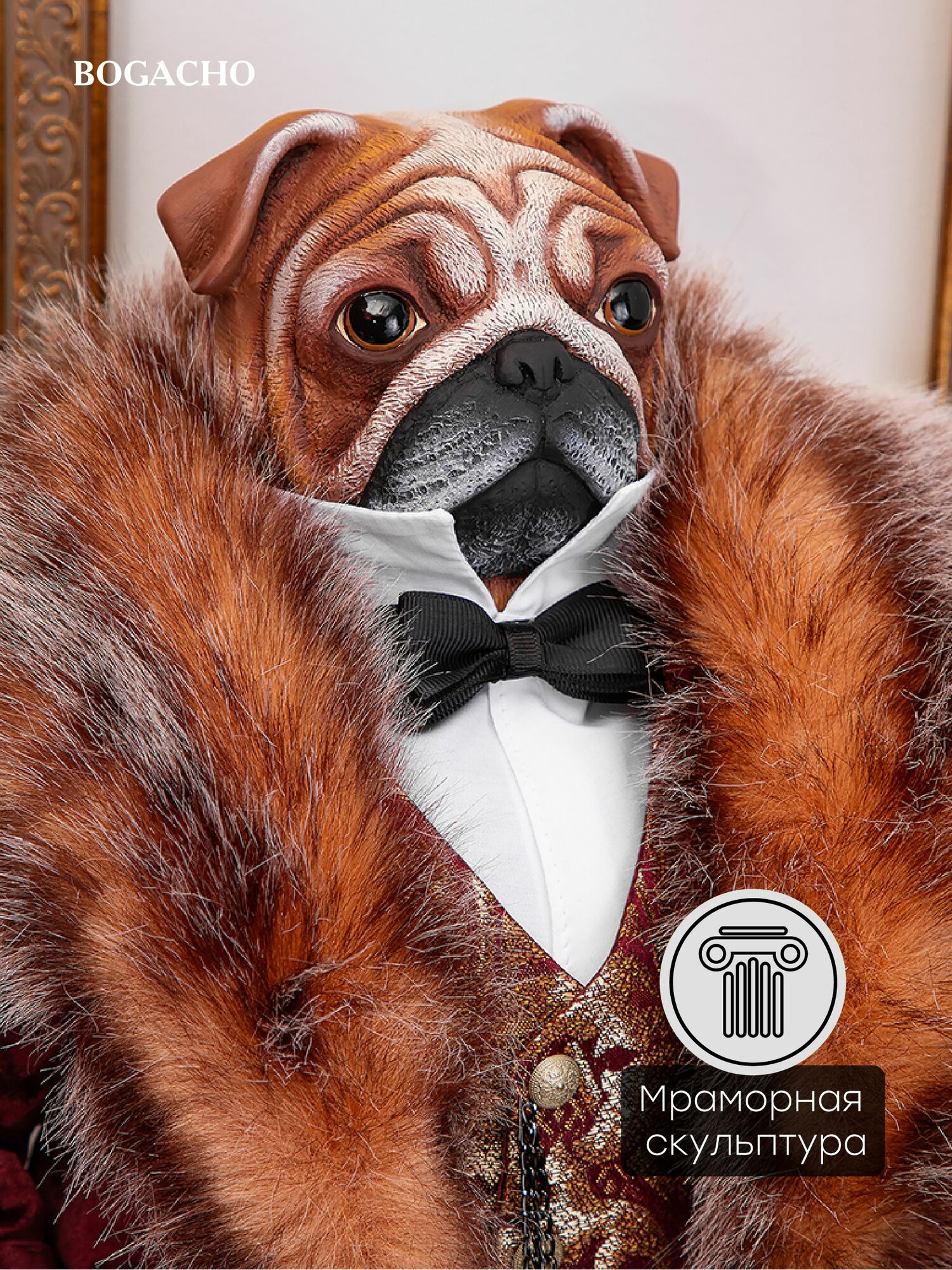 Коллекционная кукла статуэтка Bogacho Собака Мопс Бонапарт для украшения интерьера спальни, гостиной и кухни