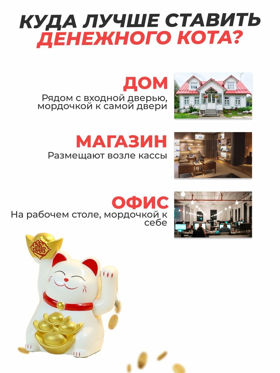 Кошечка манэки нэко, машет лапкой, для финансового благополучия, 11 см