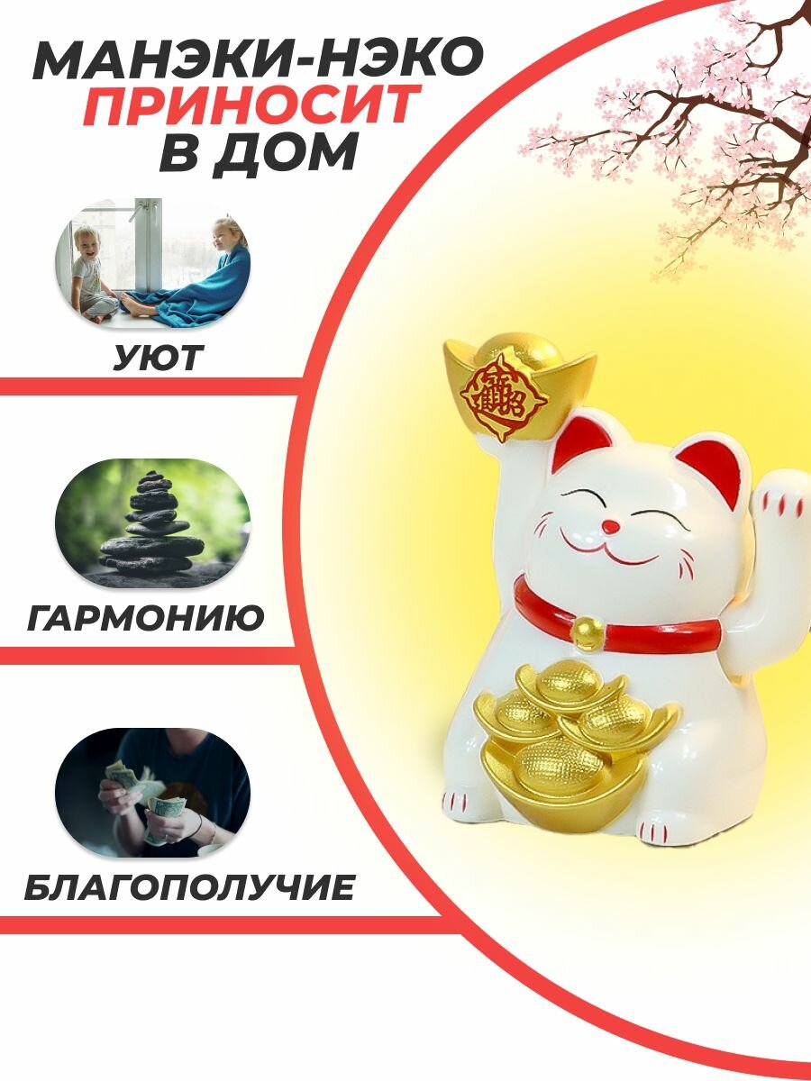 Купить Кот удачи японский МАНЭКИ-НЭКО со слитком золота, машет лапкой