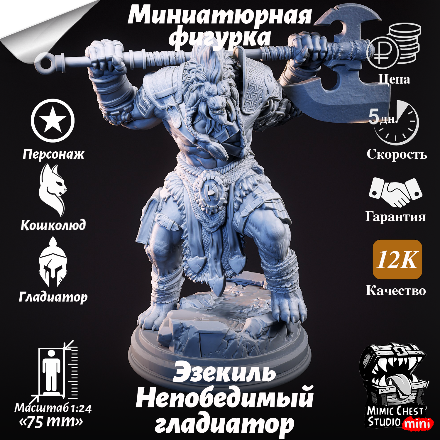 Миниатюрная фигурка зверолюд Эсекьяль — Избранник своего клана для игр DnD под покраску, 75mm интересное: