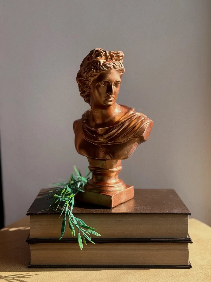 Статуэтка Аполлон, 20 см бюст из гипса, цвет: бронзовый интересное: