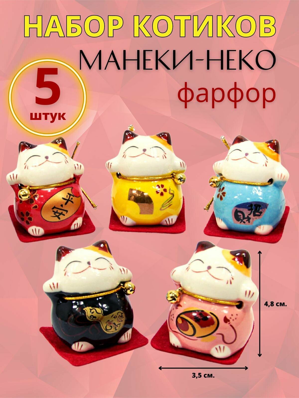 Кот Фен Шуй Манэки-нэко набор 5 штук фарфор интересное: