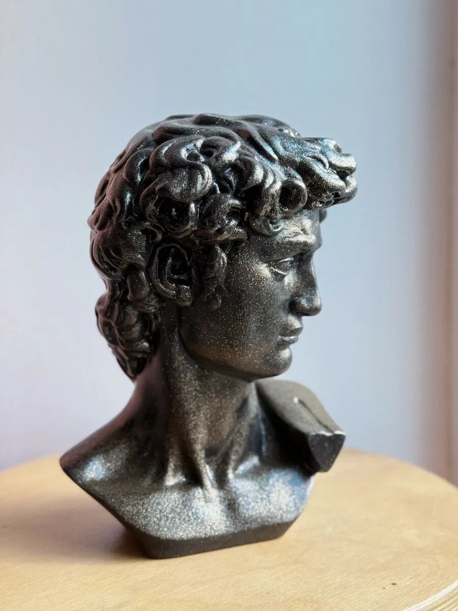 Статуэтка бюст Давида, 25 см из гипса, цвет: черный с золотым напылением интересное: