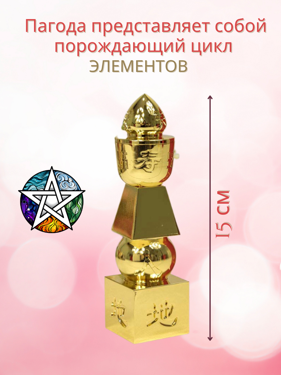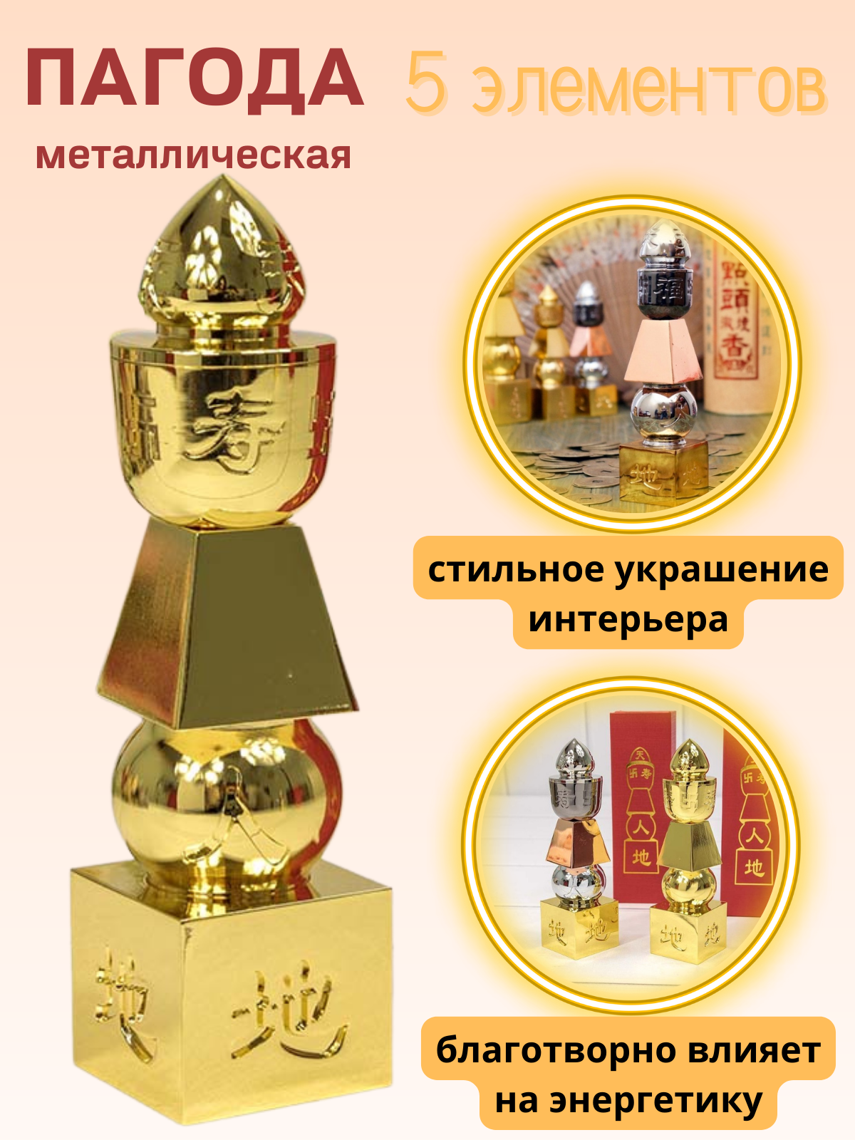 Статуэтка фен шуй Пагода 5 элементов золотистая интересное: