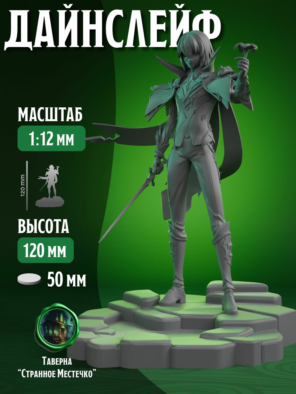 Фигурка коллекционная Дилюк под покраску (1:12), 100 см