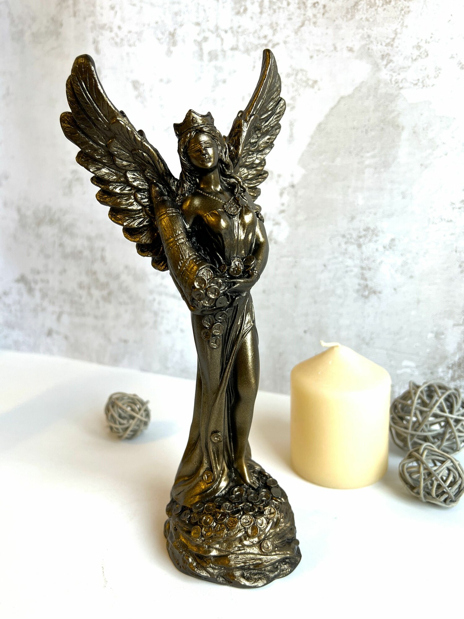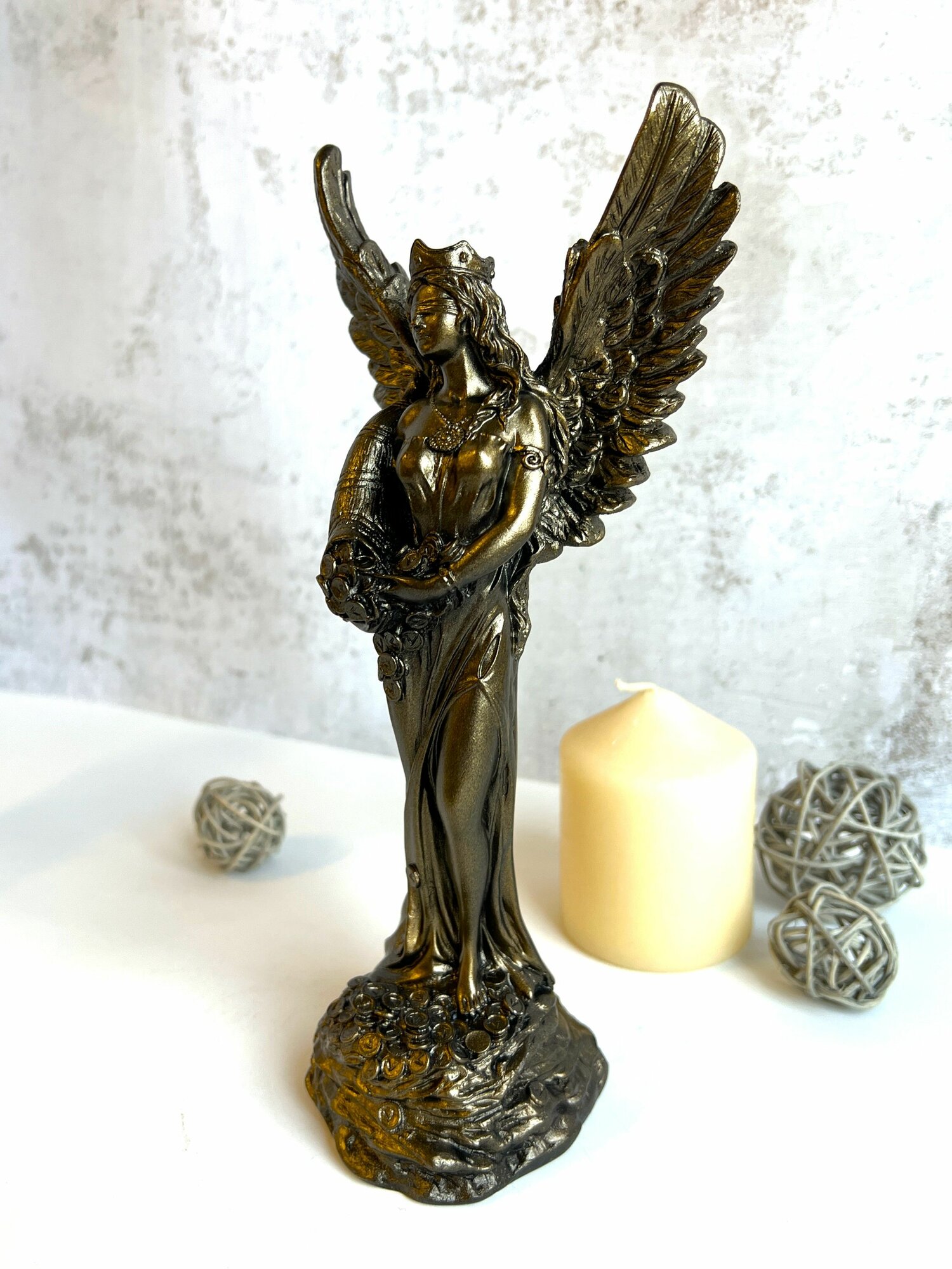 Статуэтка Фортуна - богиня удачи с крыльями. Гипс. Высота 22см. Цвет бронза интересное: