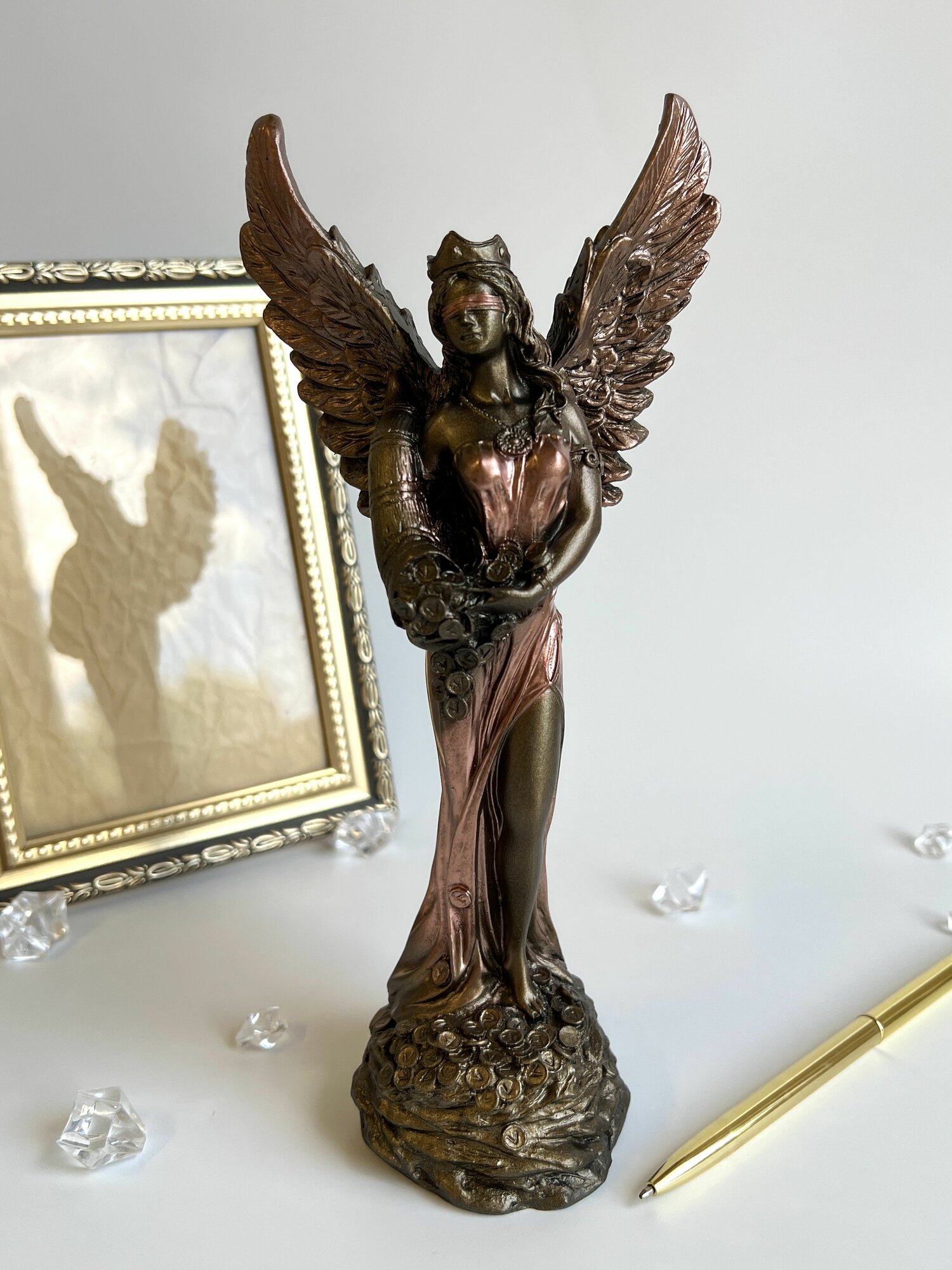 Купить Статуэтка Фортуна - богиня удачи с рогом изобилия. Гипс. Высота 22см. Цвет бронза/медь