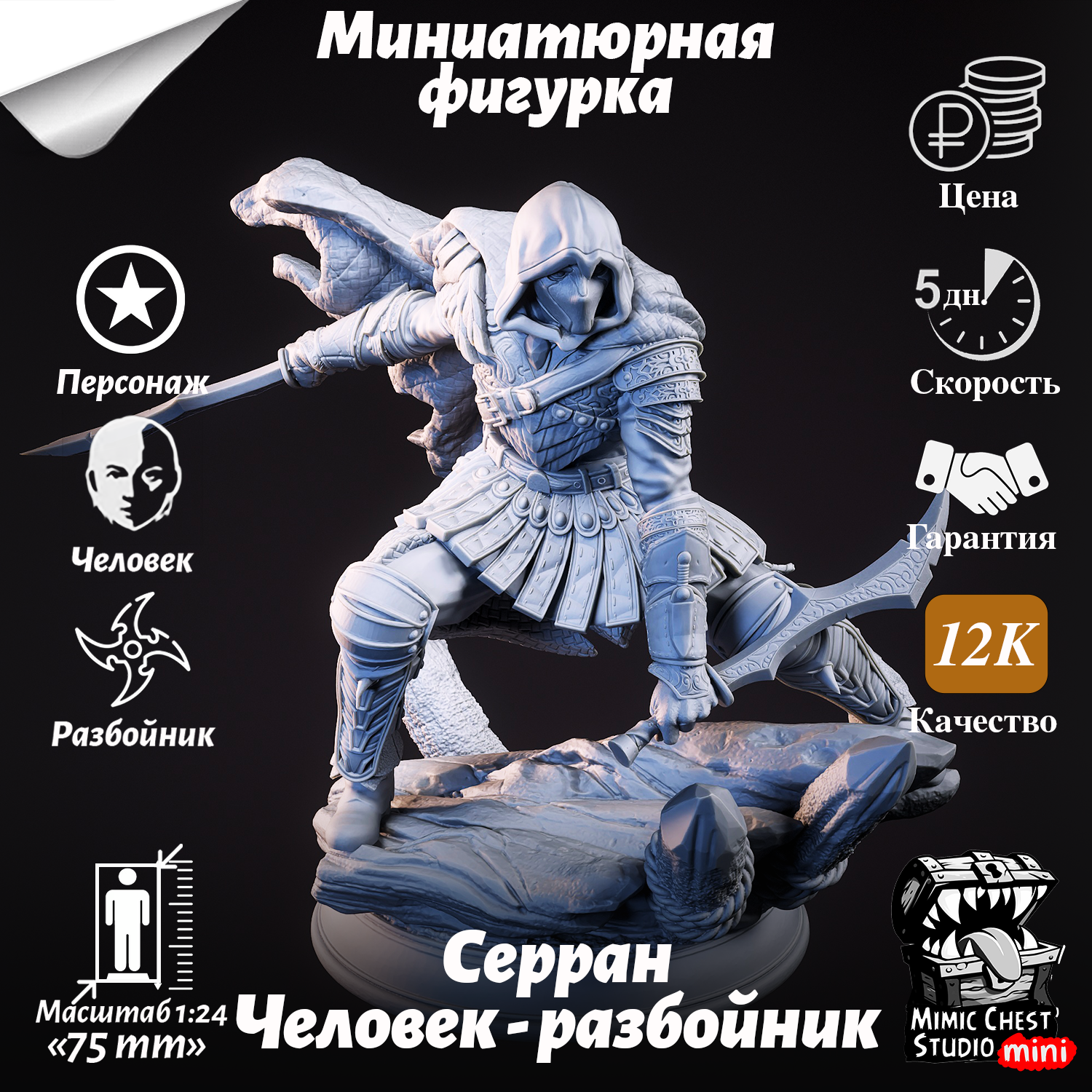 Миниатюрная фигурка человек-разбойник Серран (Serran) для игр DnD под покраску, 75mm интересное: