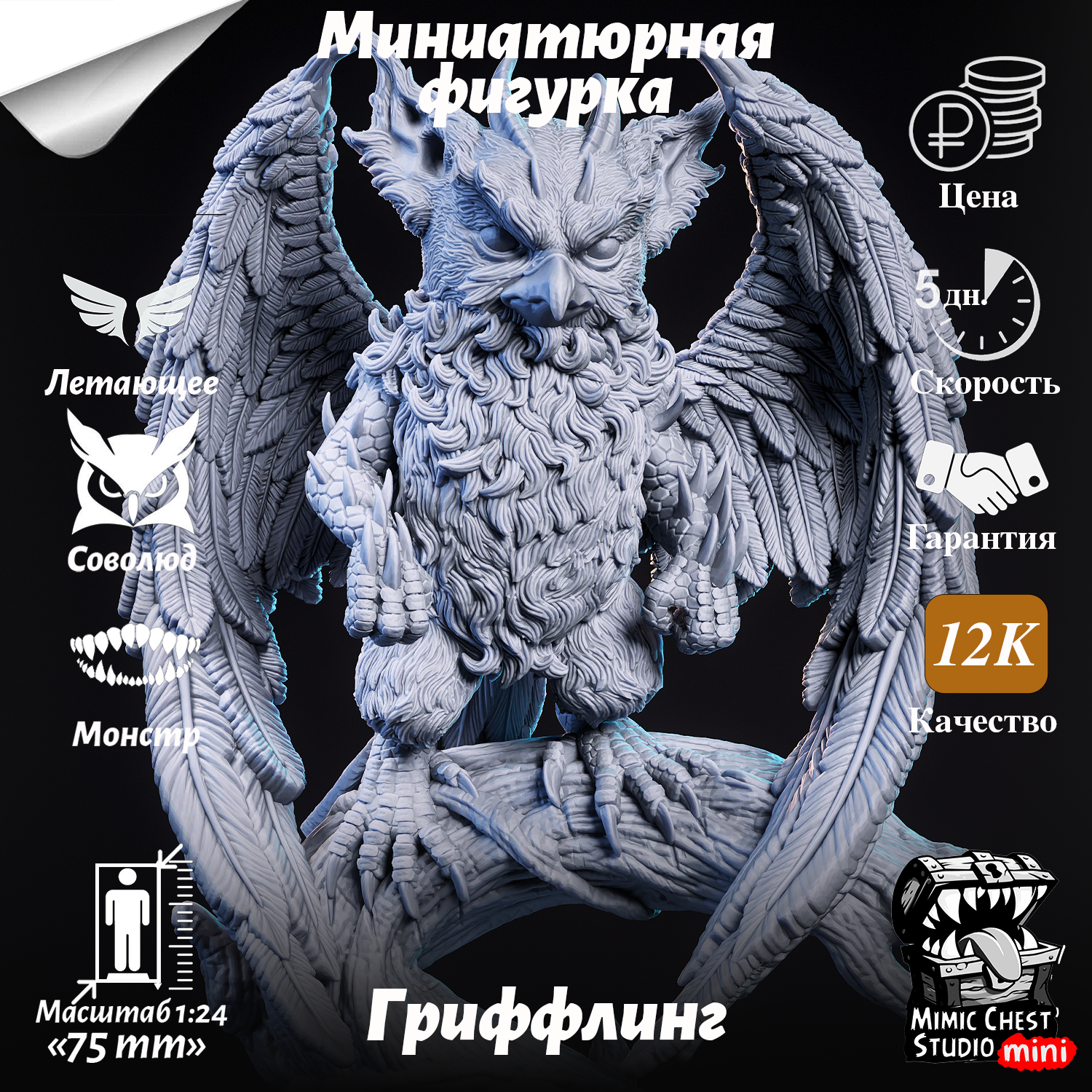 Миниатюрная фигурка Грифлинг (Griffling) для игр DnD под покраску, 75mm интересное: