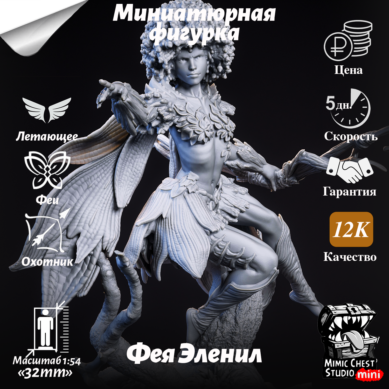 Миниатюрная фигурка фея Эленил (Elenil) для игр DnD под покраску, 32mm интересное: