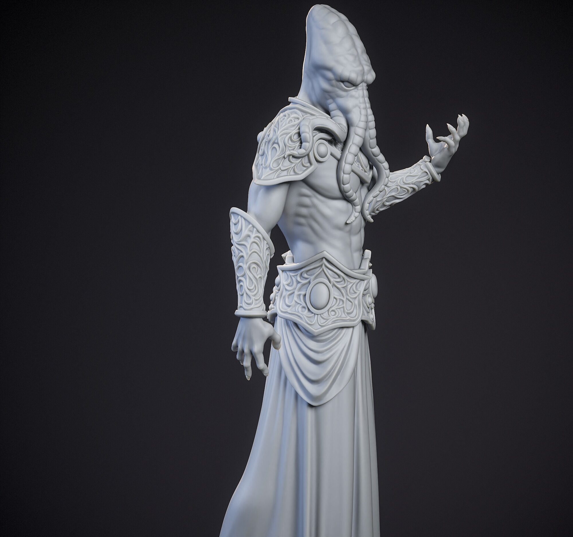 Миниатюрная фигурка ктулхунианец мастер (Flayer Master) для игр DnD под покраску, 75mm