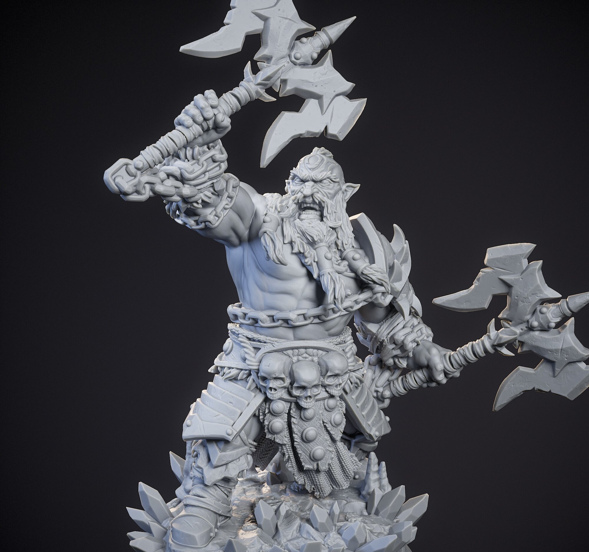 Миниатюрная фигурка Кортхарт Ненавистное Сердце – темный гном-берсерк для игр DnD под покраску, 75mm
