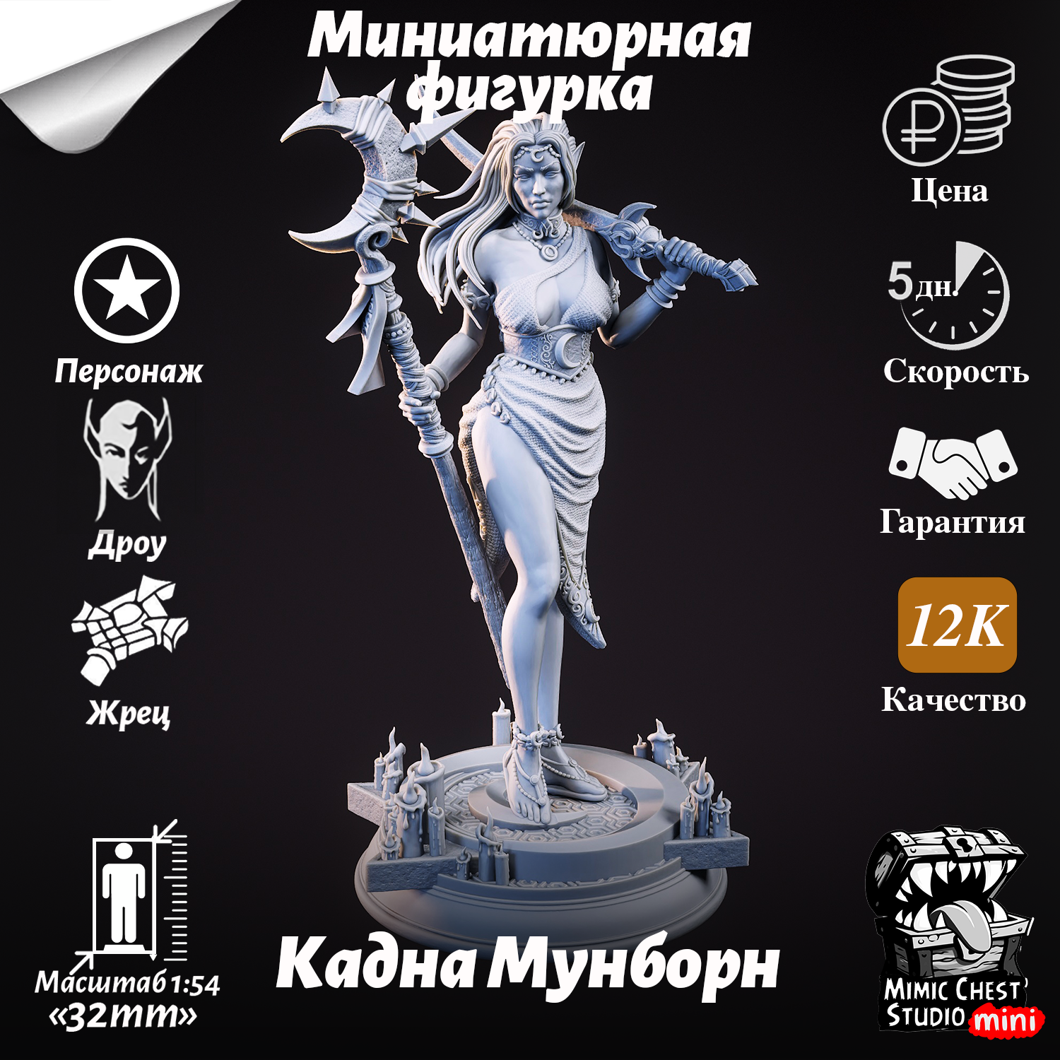 Миниатюрная фигурка дроу-жрица Кадна Мунборн (Kadna Moonborn) для игр DnD под покраску, 32mm интересное: