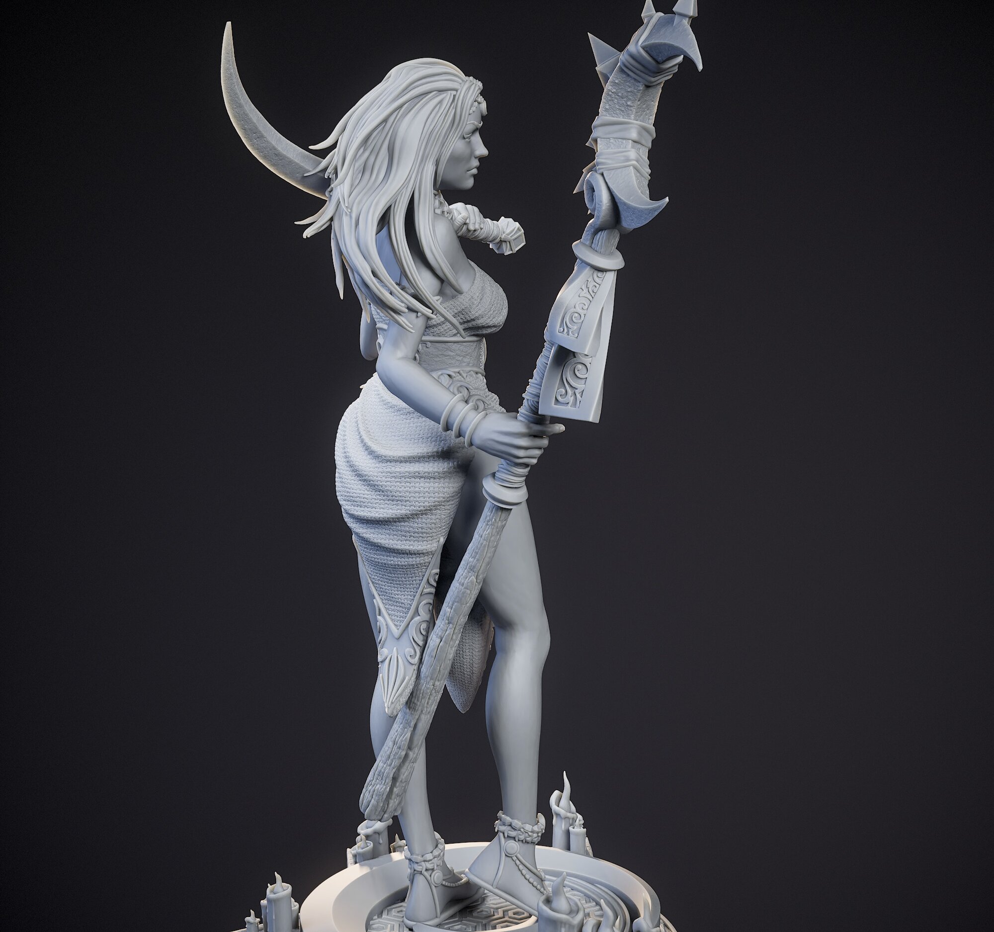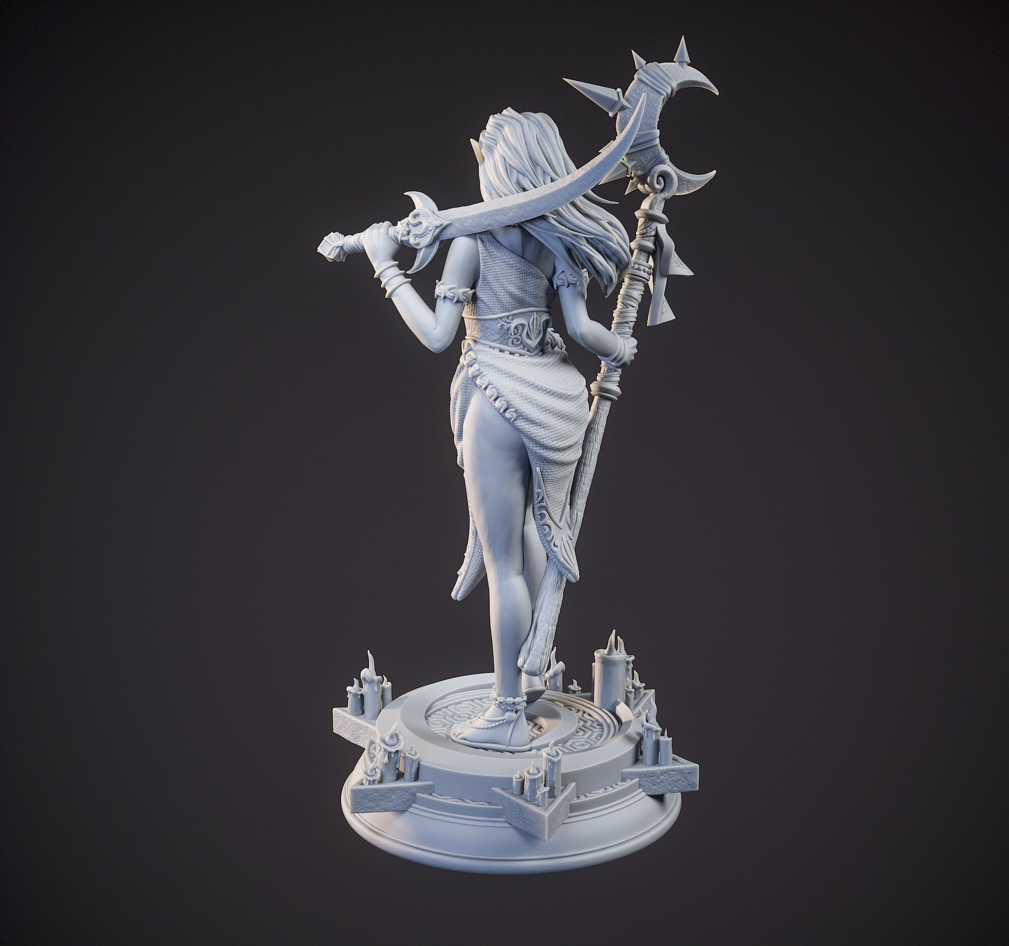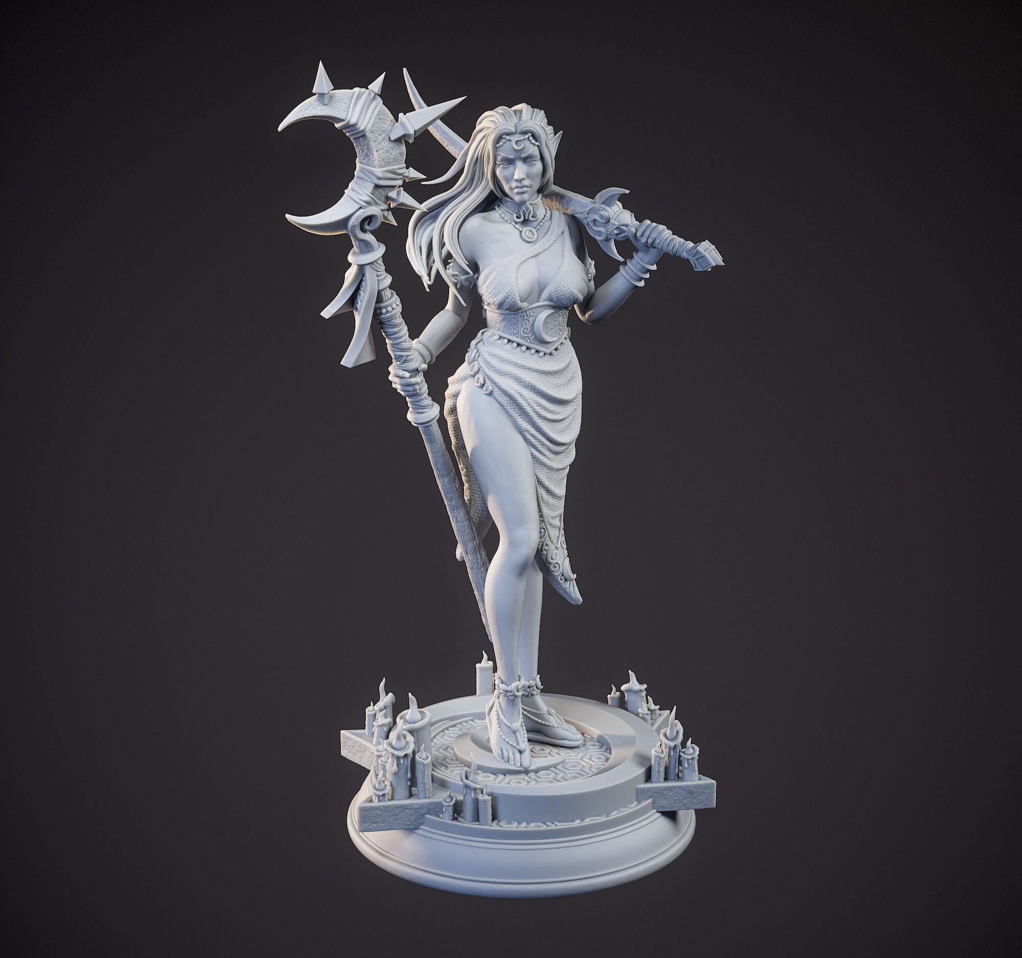 Миниатюрная фигурка дроу-жрица Кадна Мунборн (Kadna Moonborn) для игр DnD под покраску, 75mm