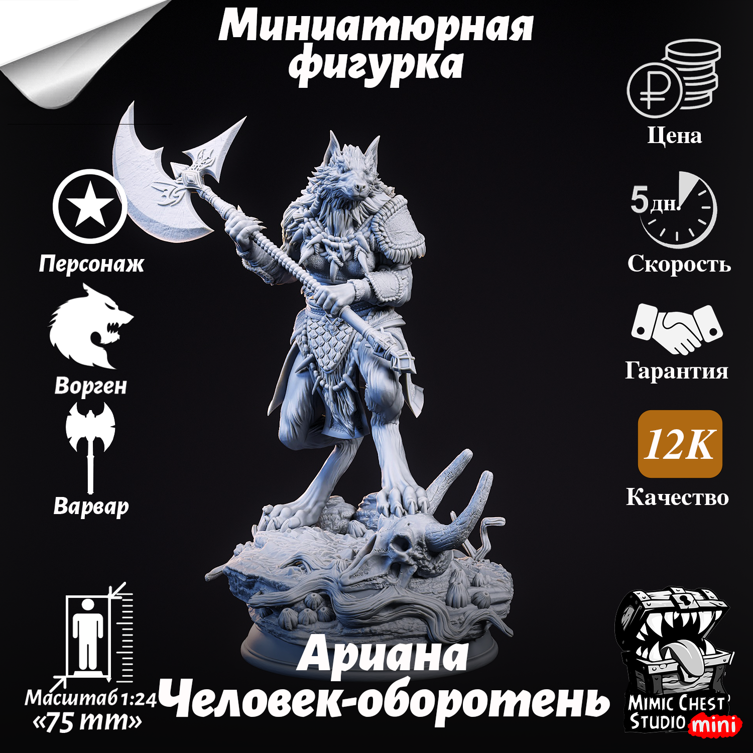 Миниатюрная фигурка человек-оборотень Ариана (форма волка) для игр DnD под покраску, 75mm интересное: