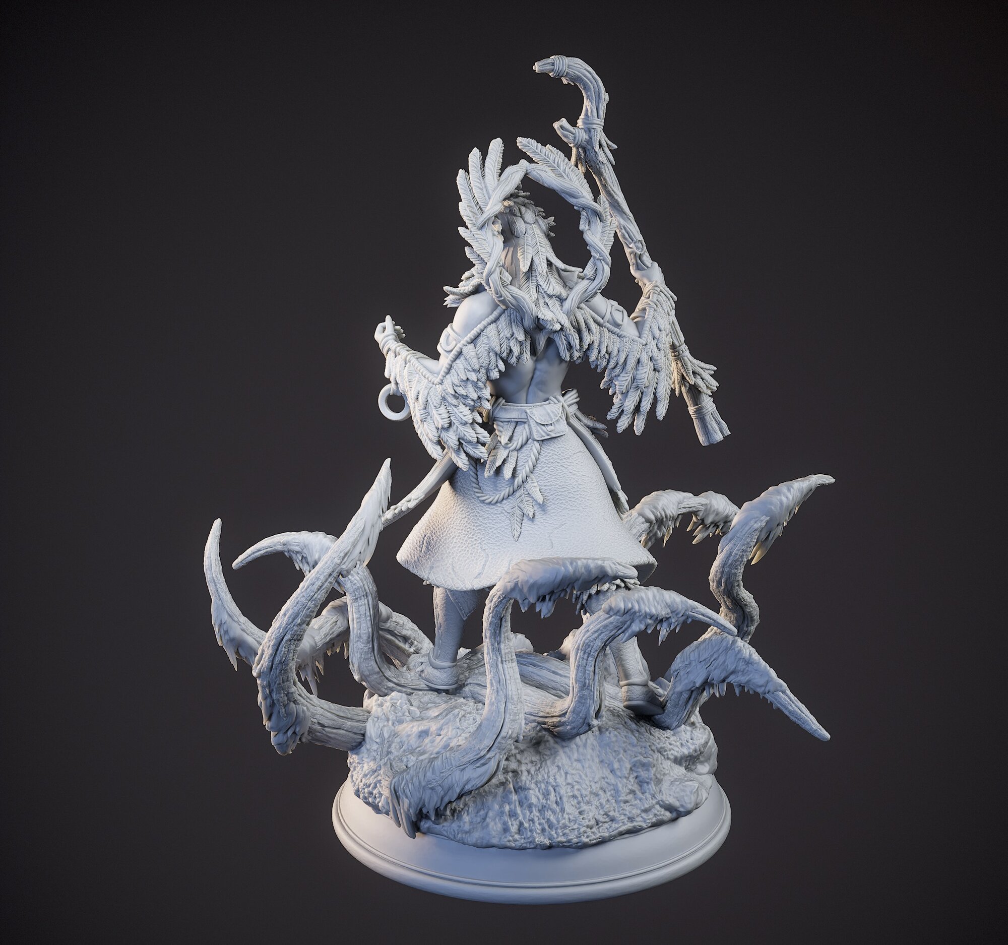 Миниатюрная фигурка эльф-друид Зарбаэт (Zarbaeth) для игр DnD под покраску, 75mm