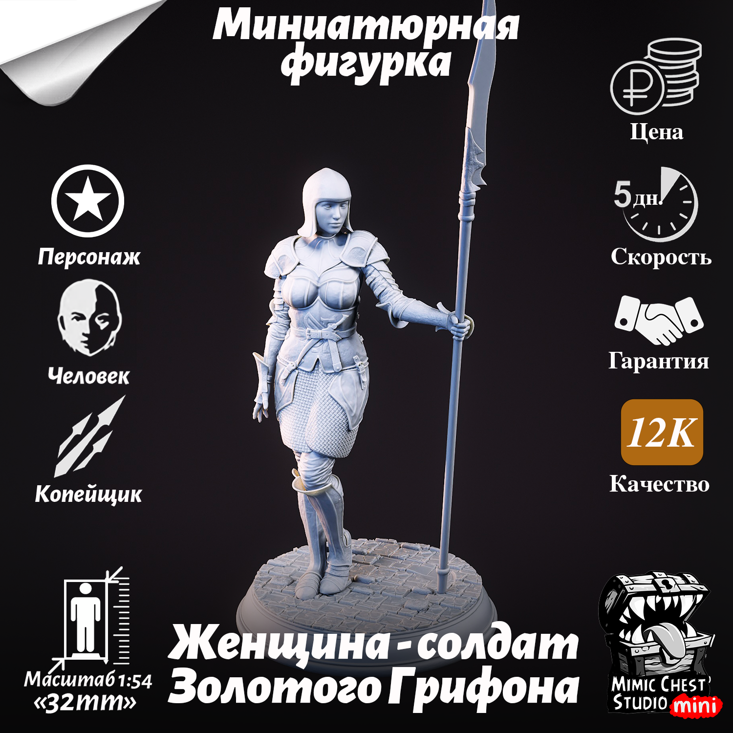 Миниатюрная фигурка Женщина-солдат Золотого Грифона (Golden Griffin Soldier Female) для игр DnD под покраску, 32mm интересное: