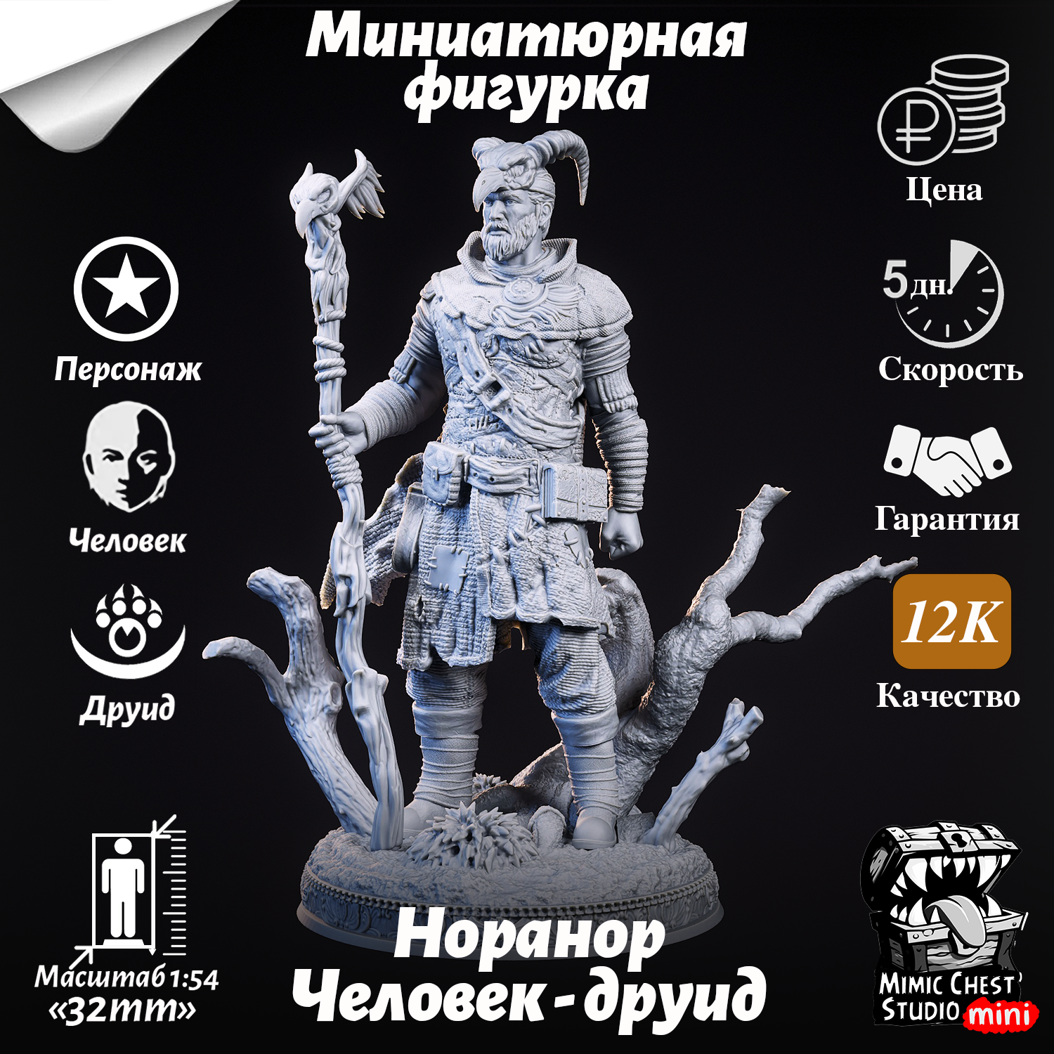Миниатюрная фигурка человек-друид Норанор (Noranor) для игр DnD под покраску, 32mm интересное: