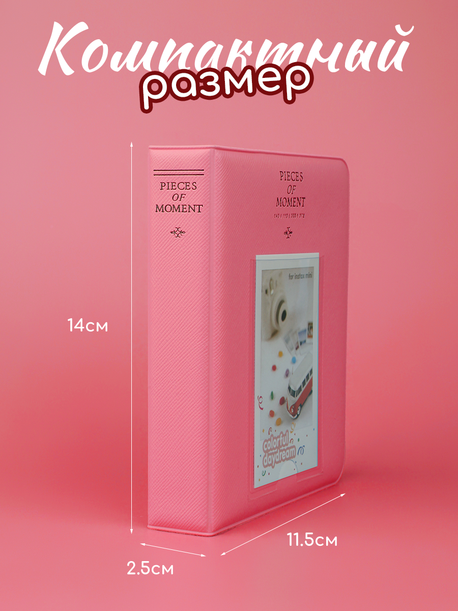 Фотоальбом Instax Mini, для фотокарт, розовый, 64 снимка, 8.6x5.4 см