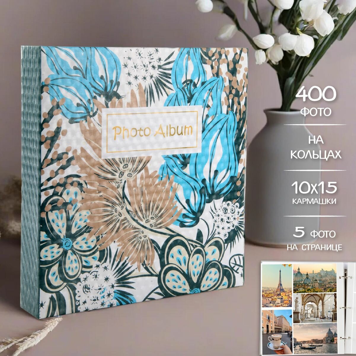 Фотоальбом Pioneer на 400 фотографий, 10х15 см, пап карман, переплет 3-кольца, flowers (119298)