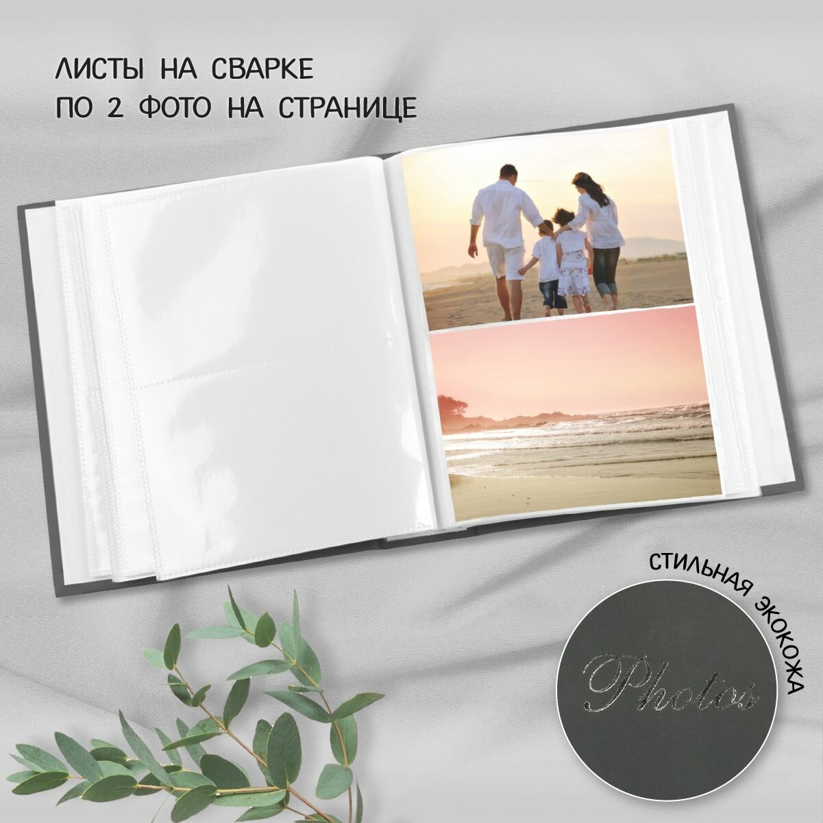 Фотоальбом из эко-кожи, двухцветный с вышивкой, 200 фото 10х15 см в кармашках