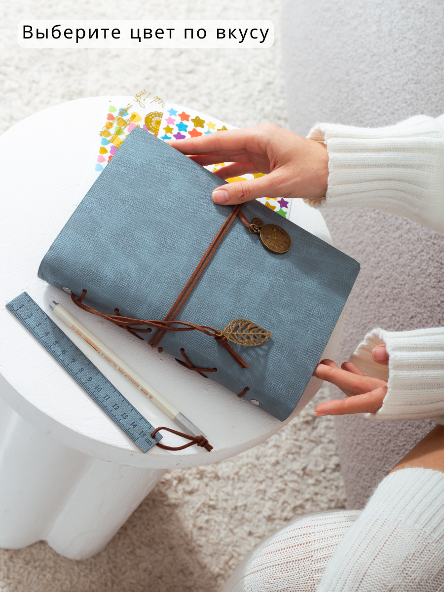 Фотоальбом из эко-кожи, двухцветный с вышивкой, 200 фото 10х15 см в кармашках