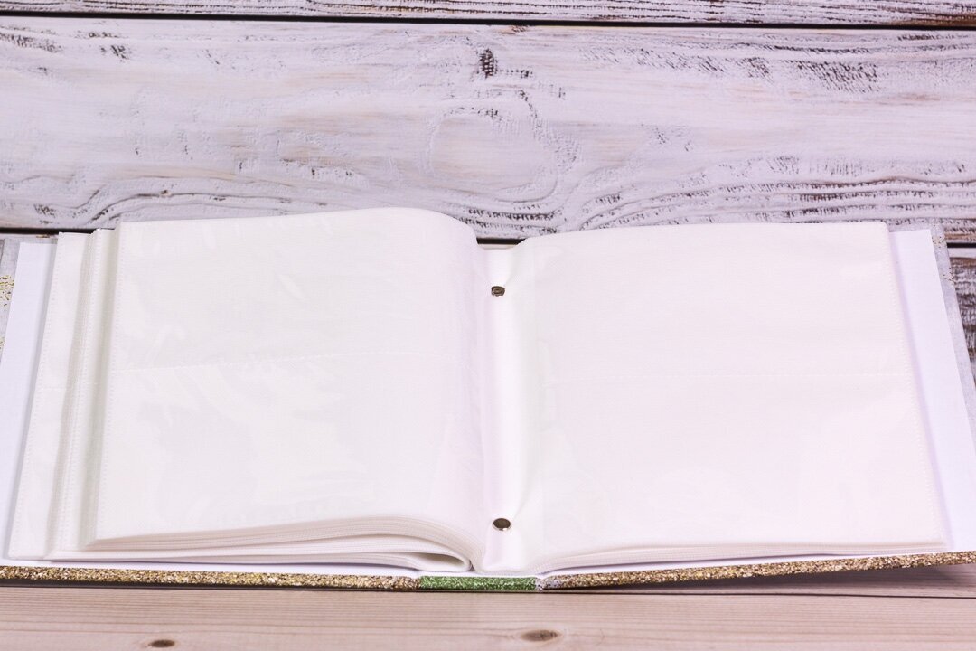 Фотоальбом из эко-кожи, двухцветный с вышивкой, 200 фото 10х15 см в кармашках