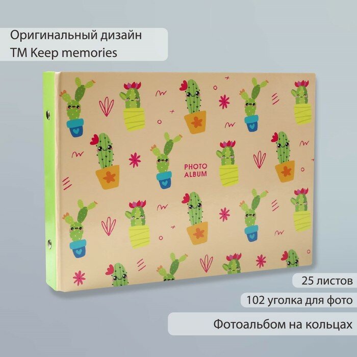 Купить Фотоальбом 25 листов (уголки+кольца) "Кактусы в горшочках" 27х19 см