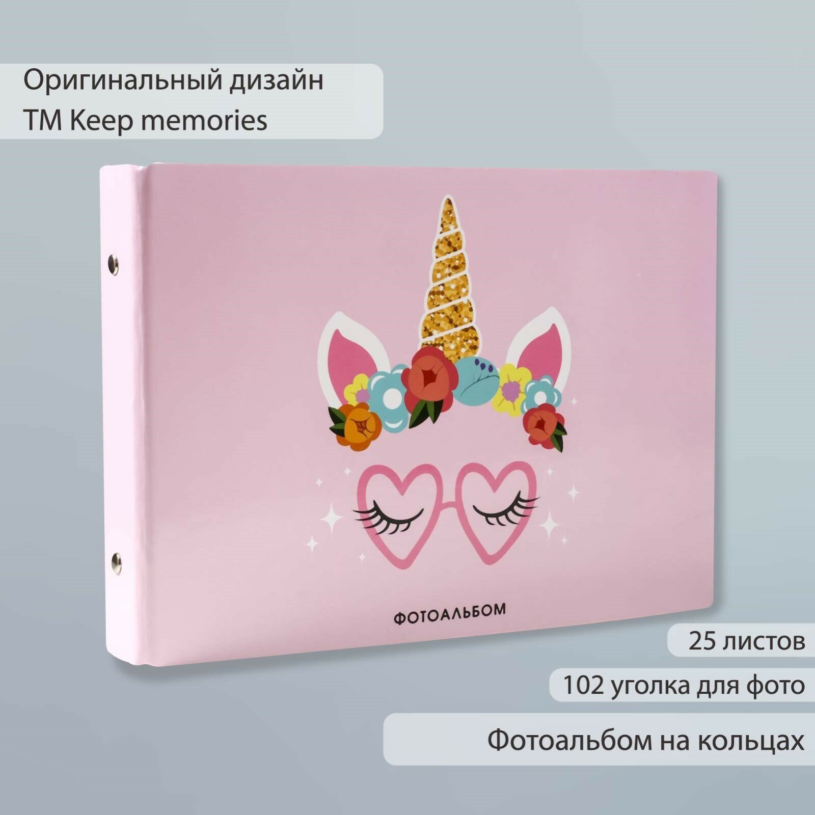 Купить Фотоальбом 25 листов (уголки+кольца) "Единорог с цветами" 27х19 см