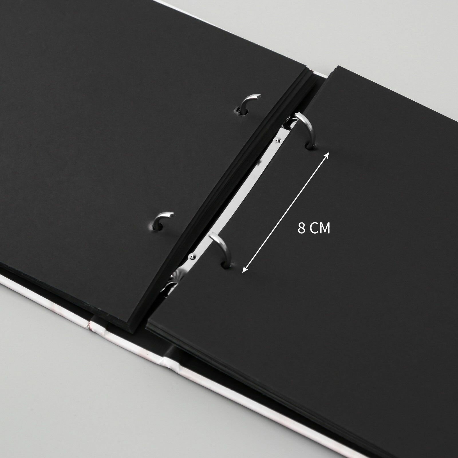 Фотоальбом на кольцах 30 листов "Фотоаппарат на плитке" чёрные листы 18х18 см